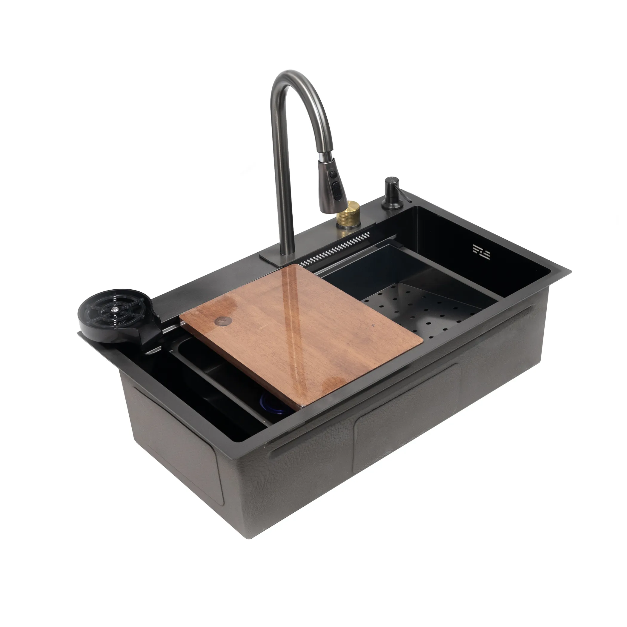 Мойка н/сталь, прямоугольная одночашевая со смесителем, 750*450мм, графит, PVD покрытие, врезн на/вровень столешнице, AKS (3,2мм)
