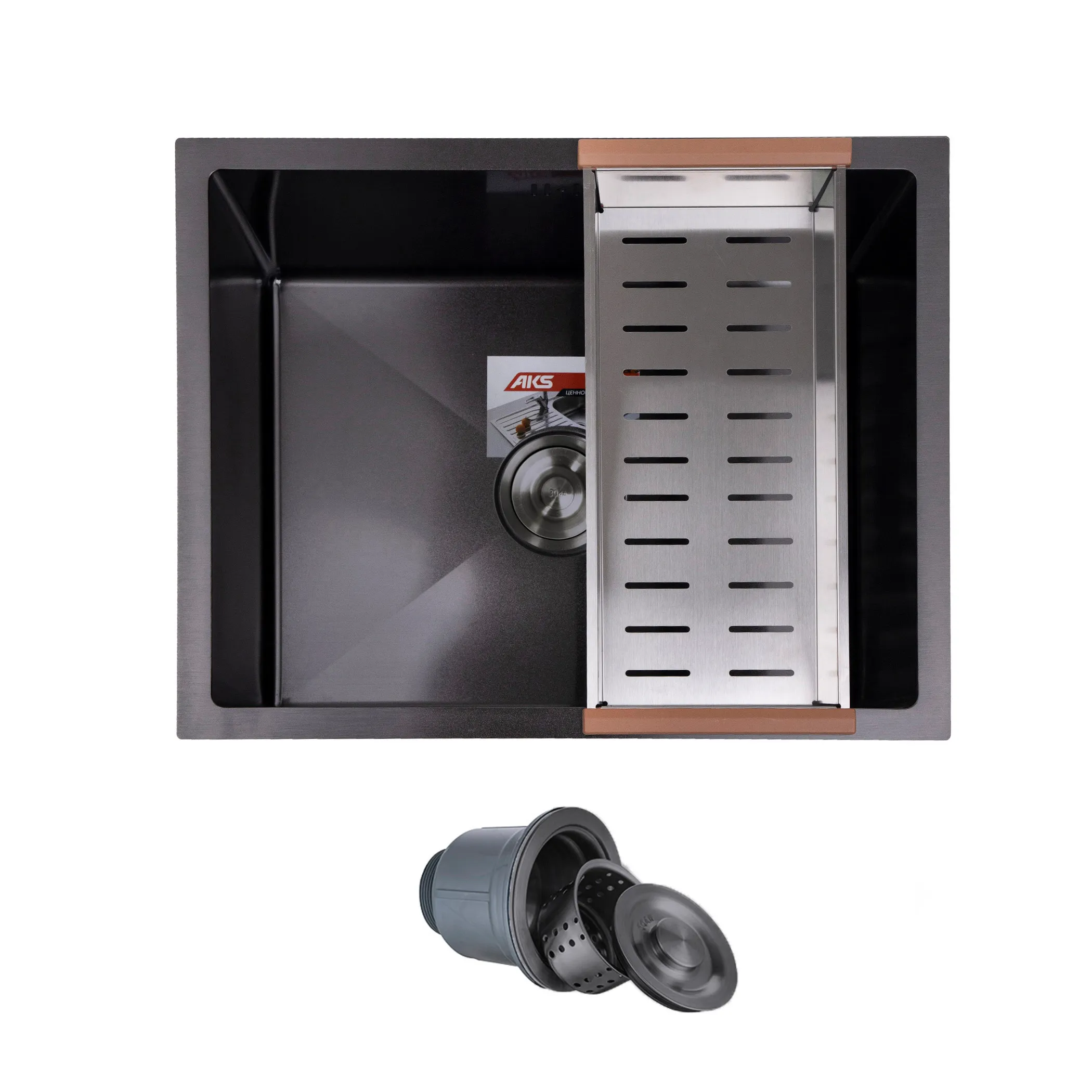 Мойка н/сталь, прямоугольная одночашевая, 570*460мм, черный, универсальная, AKS (3,2мм)