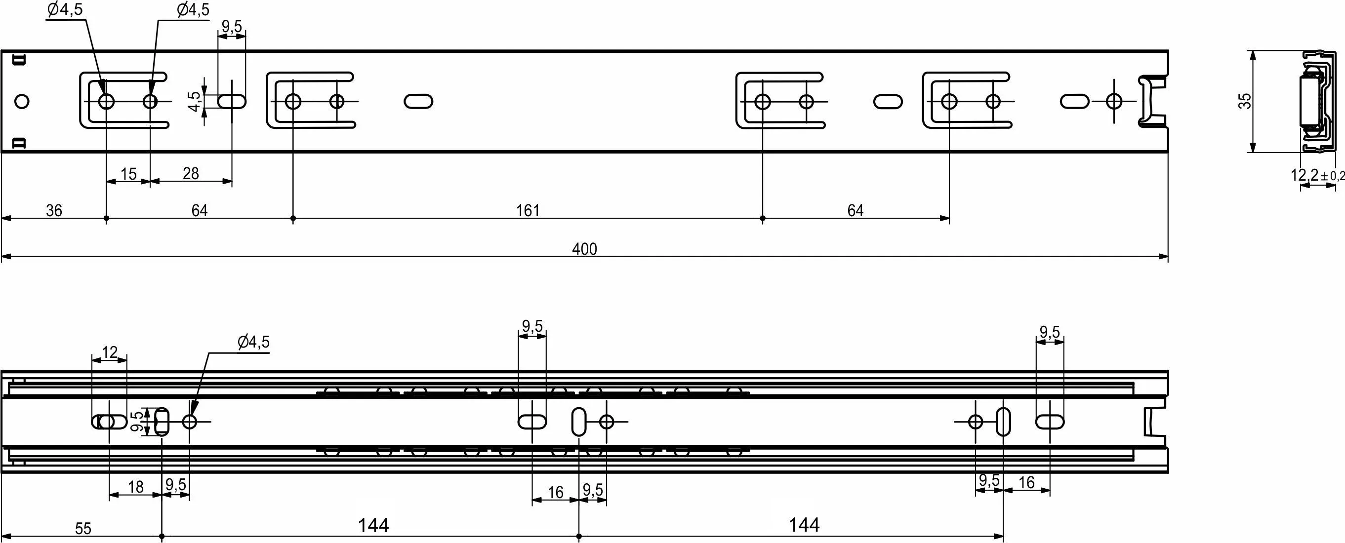 Направляющая шариковая L-400 h=35 GRIDLI B