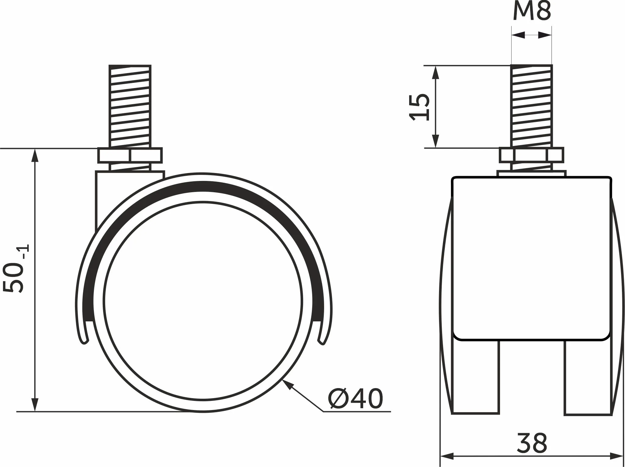 Колесо меб. пласт. d40 с винтом М8 с торм., черный AKS