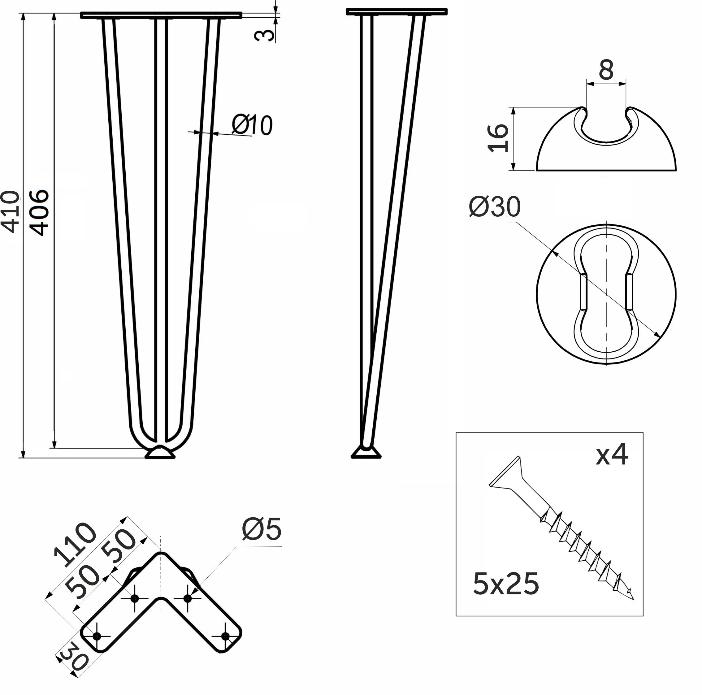 Стильная опора для столов FLASH изготовлена из пруткового металла d10 мм.