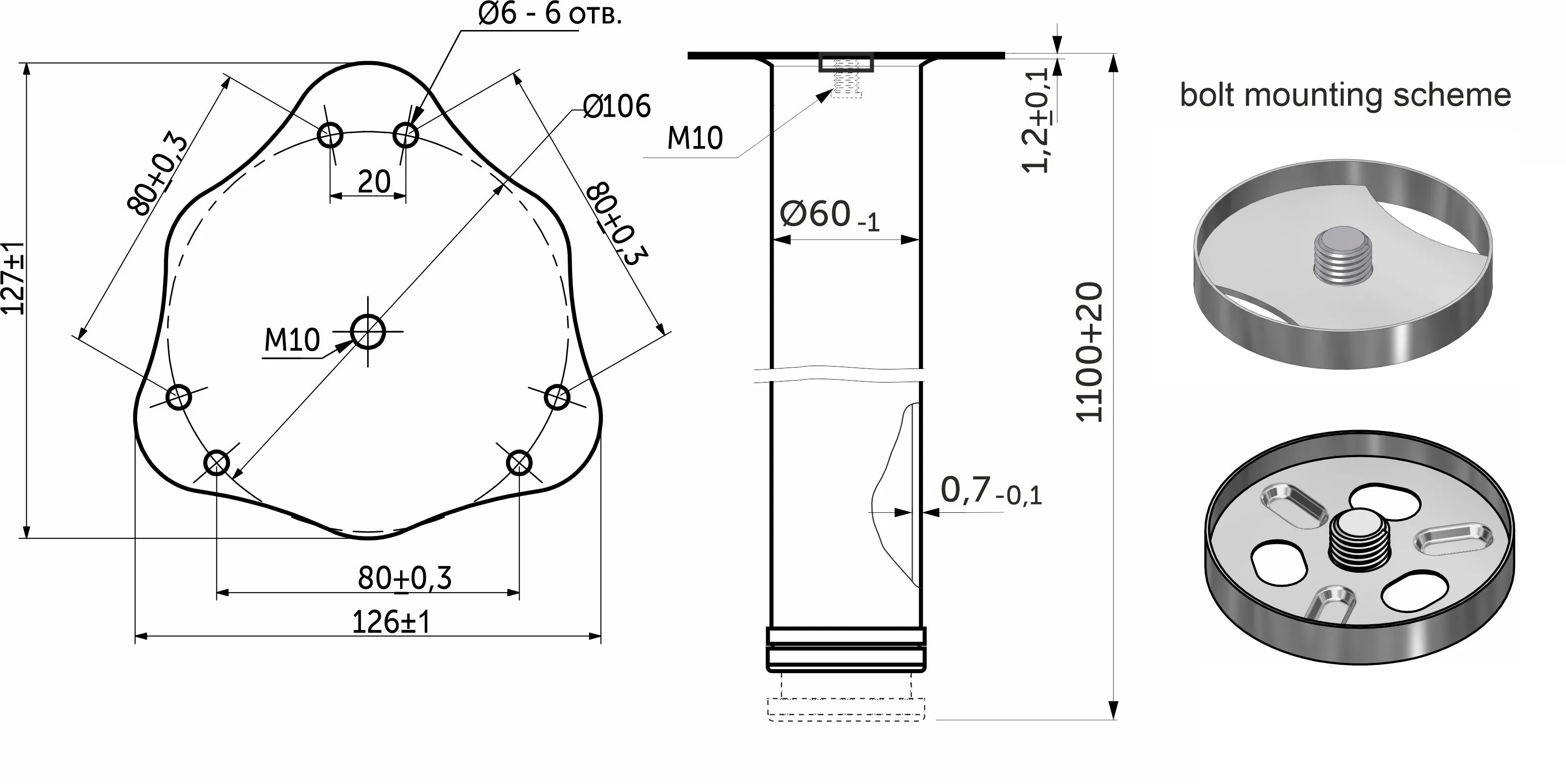 Опора меб. круглая d60 h1100, черный, винт М10, AKS