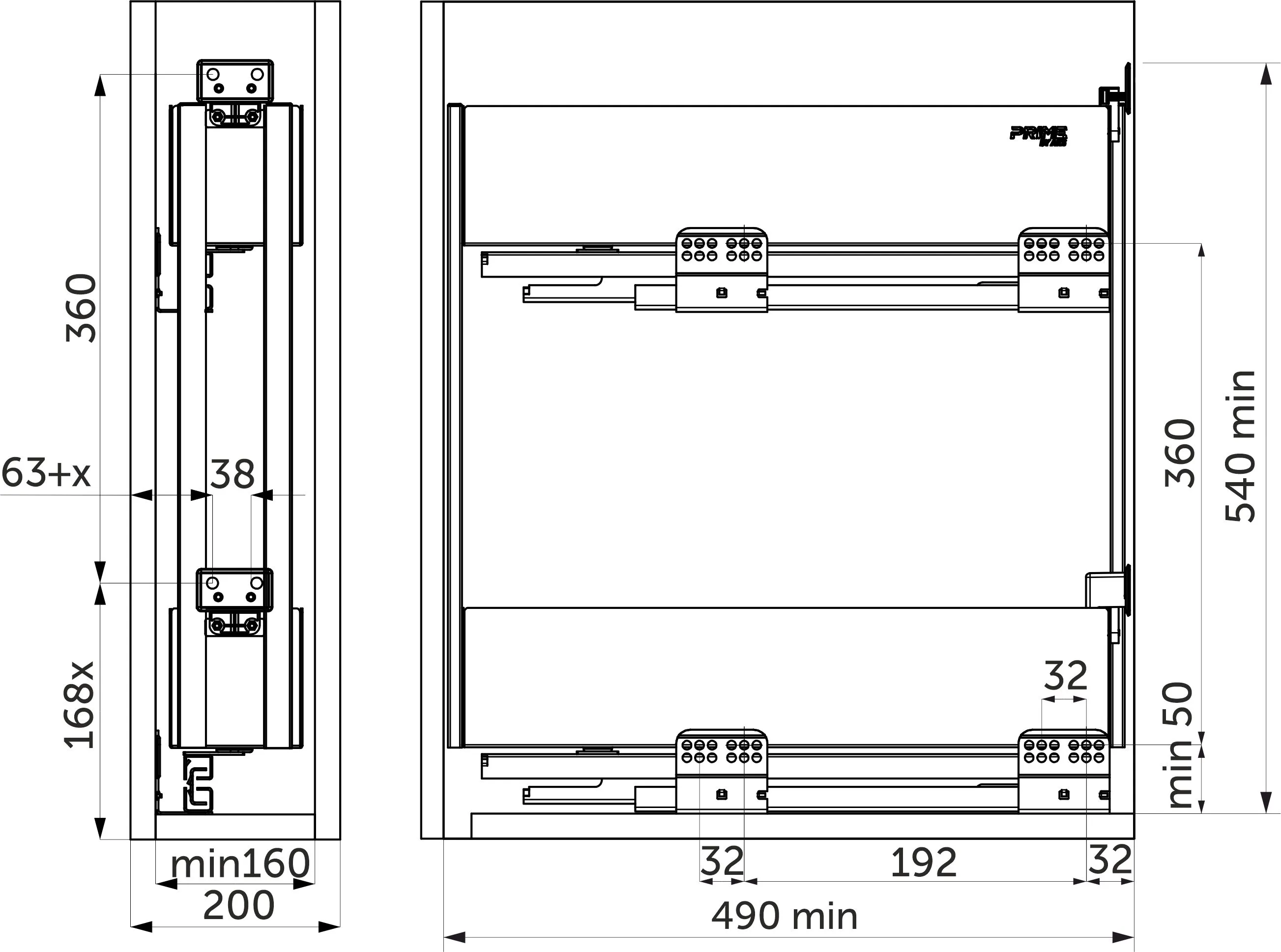 Выдвижная корзина-карго 200 ICON крепл.боковое/левое, графит PRIME by AKS