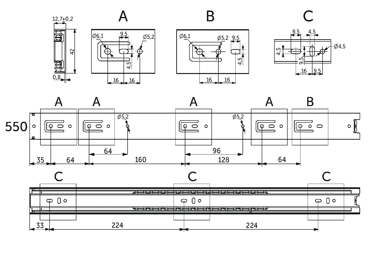 Направляющая шариковая L-550 h=42 GRIDLI A