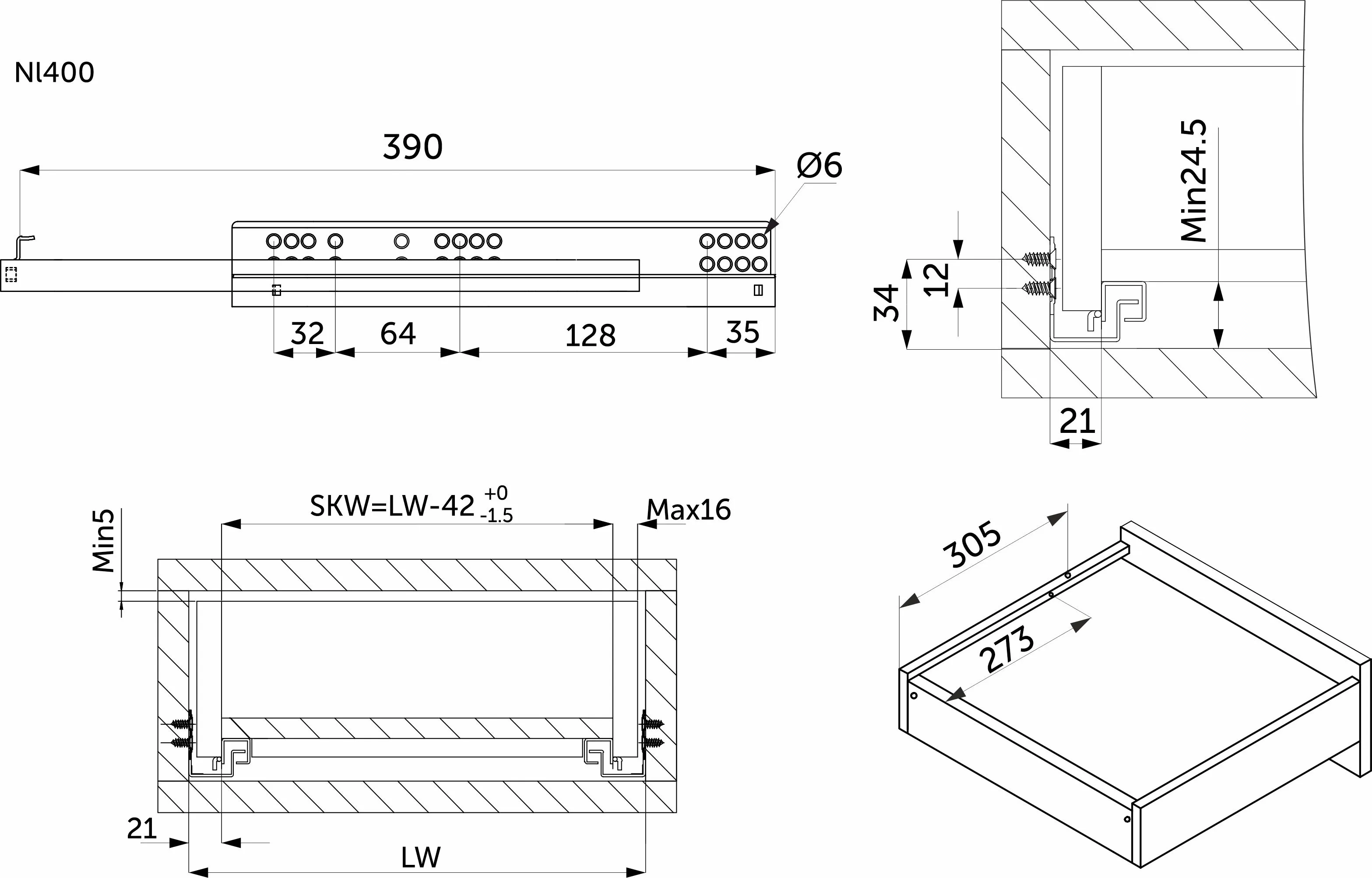 | Длина направляющей (L, мм) | 400 |