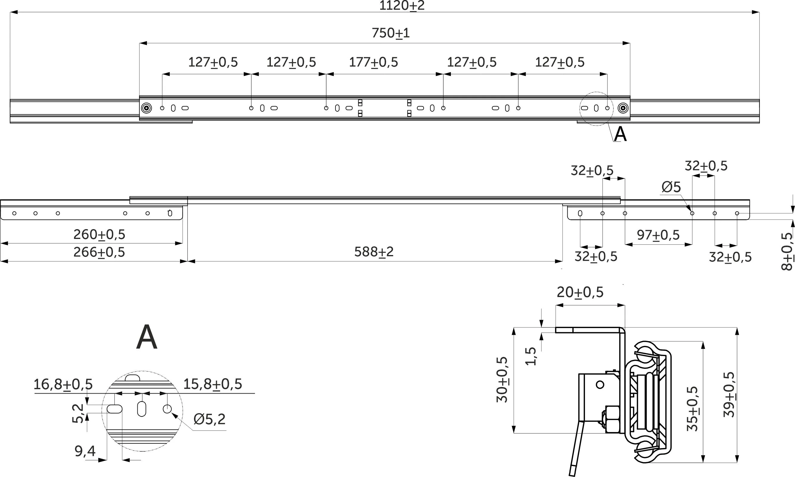 Механизм для раздвижных столов внешний синхронный со стопором L-750 мм AKS