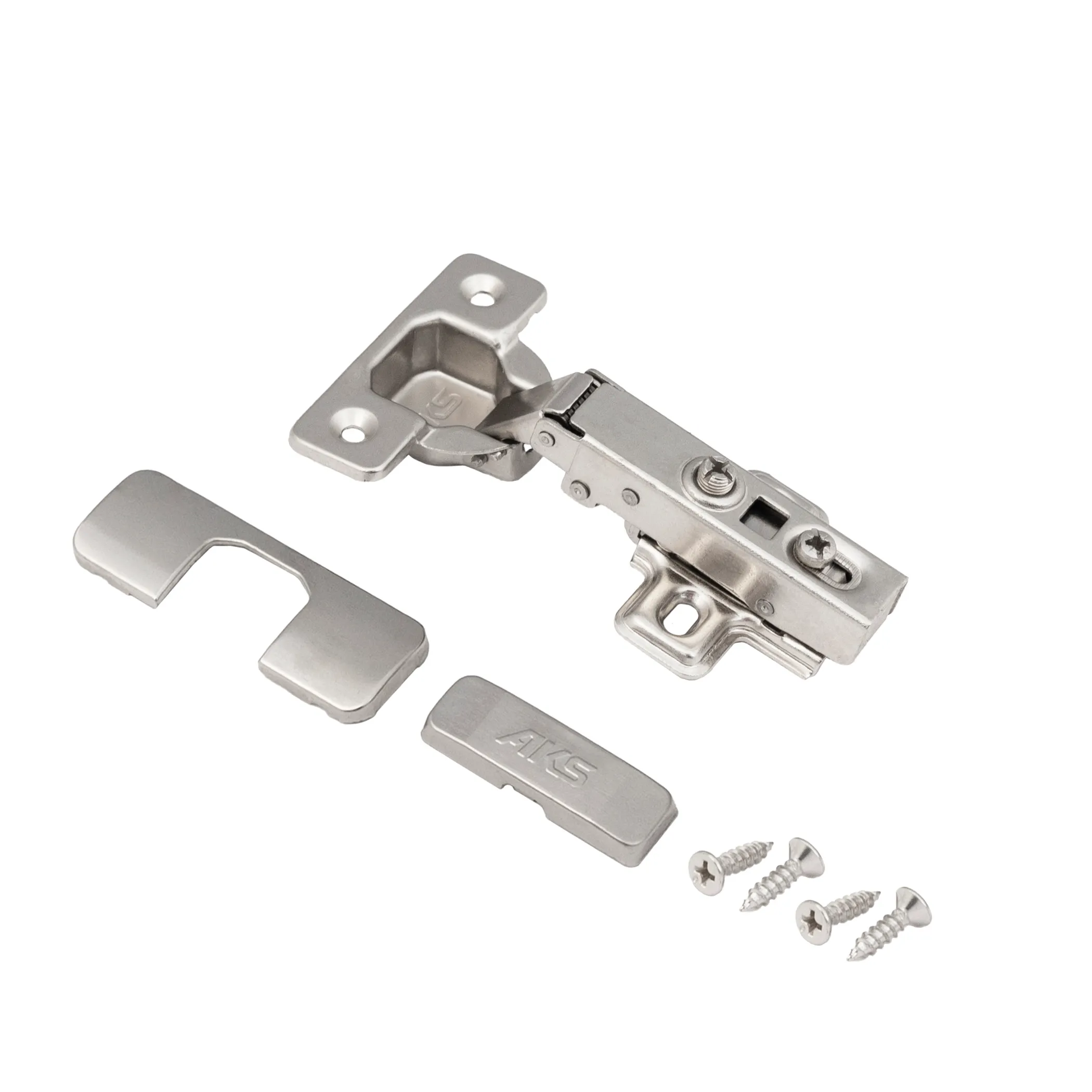 Петля накладная с доводчиком AKS – классическая мебельная петля с механизмом плавного закрывания фасада, с углом установки 90°.