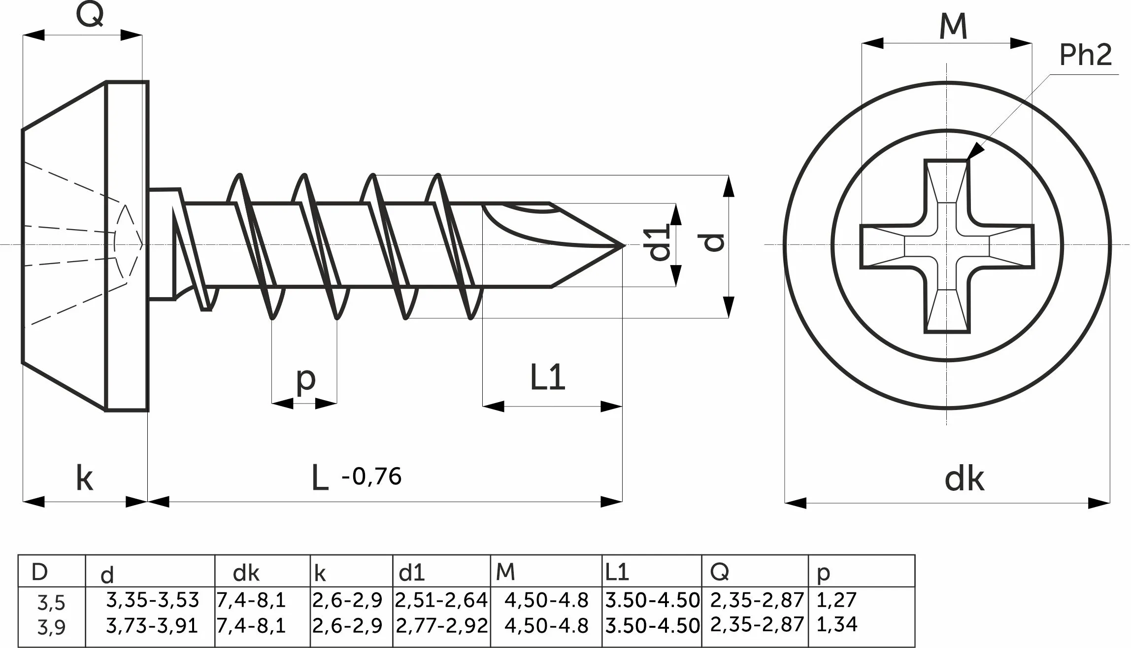 | Тип шлица | PH |