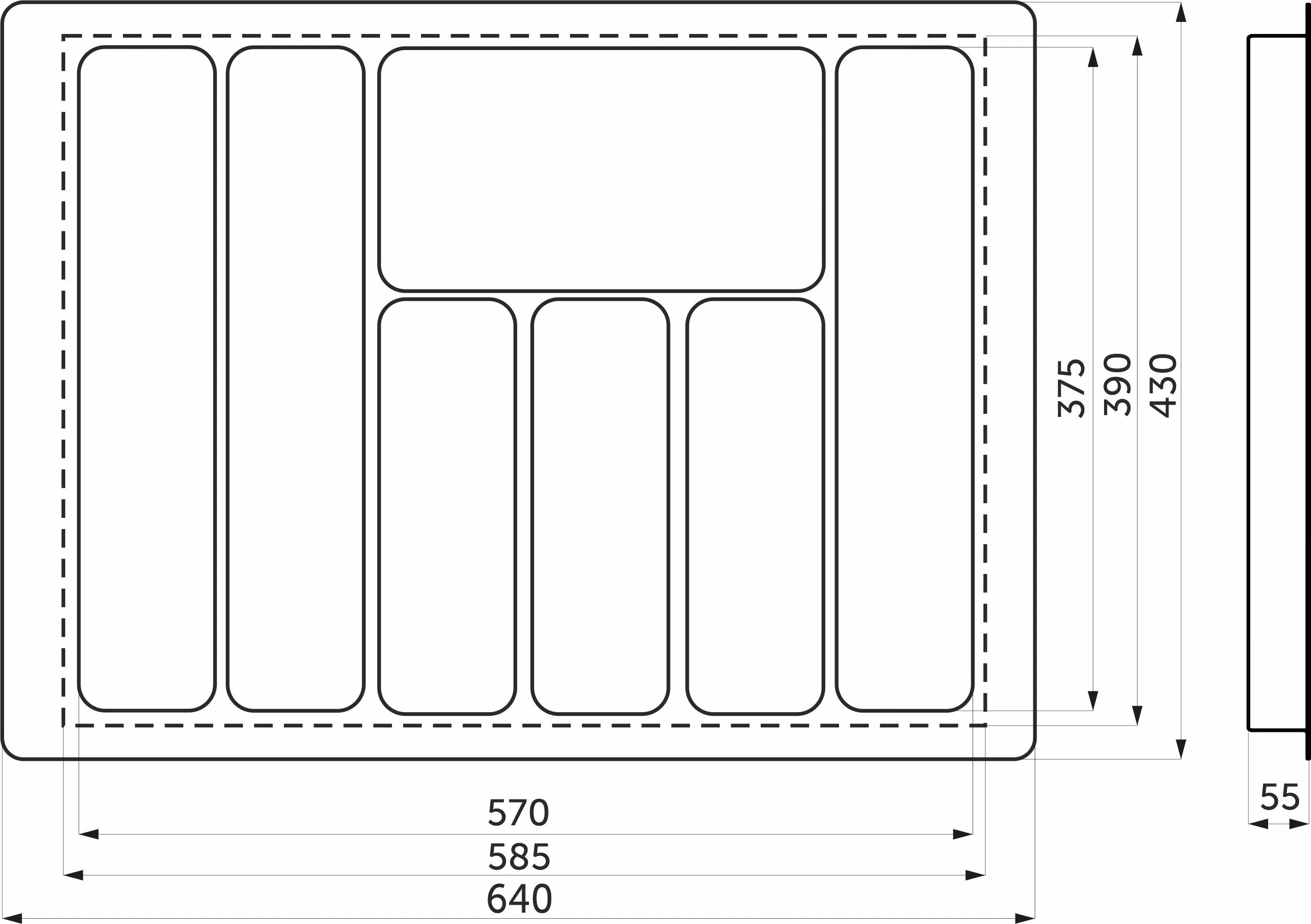 Вкладыш 60/550 шуфлядный металлический Organizer нержавеющая сталь (523*564*65) AKS