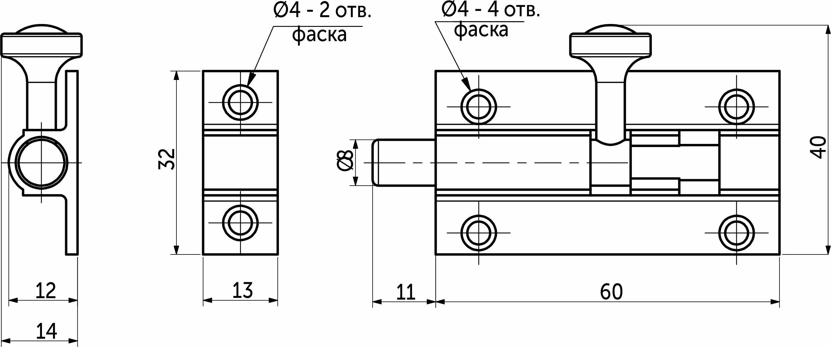 Задвижка мебельная (шпингалет) никель, тип 2, AKS