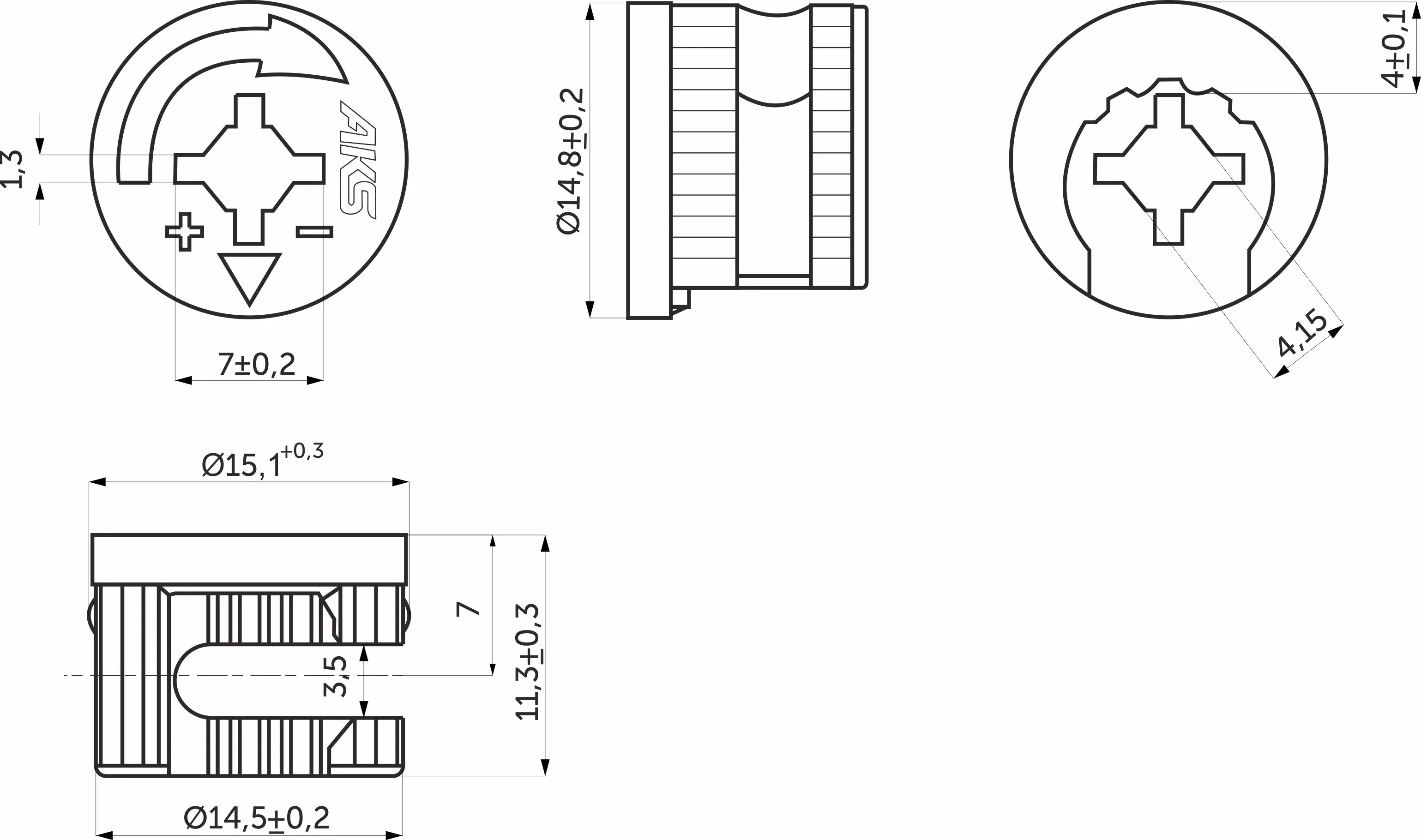 Эксцентрик 15x11,5 для плиты 16 мм + шток 7*34/6*11 (уп/10компл) AKS