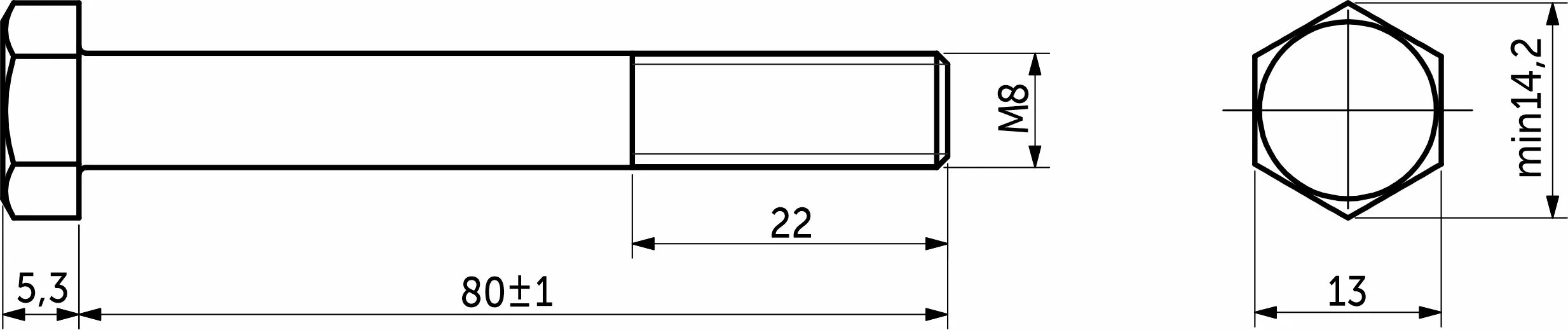 Он используется с гайками различных видов (чаще всего с шестигранными гайками) соответствующего размера. Данный болт имеет резьбу М8 и длину до шляпки 80 мм, при этом длина резьбы составляет 24 мм.