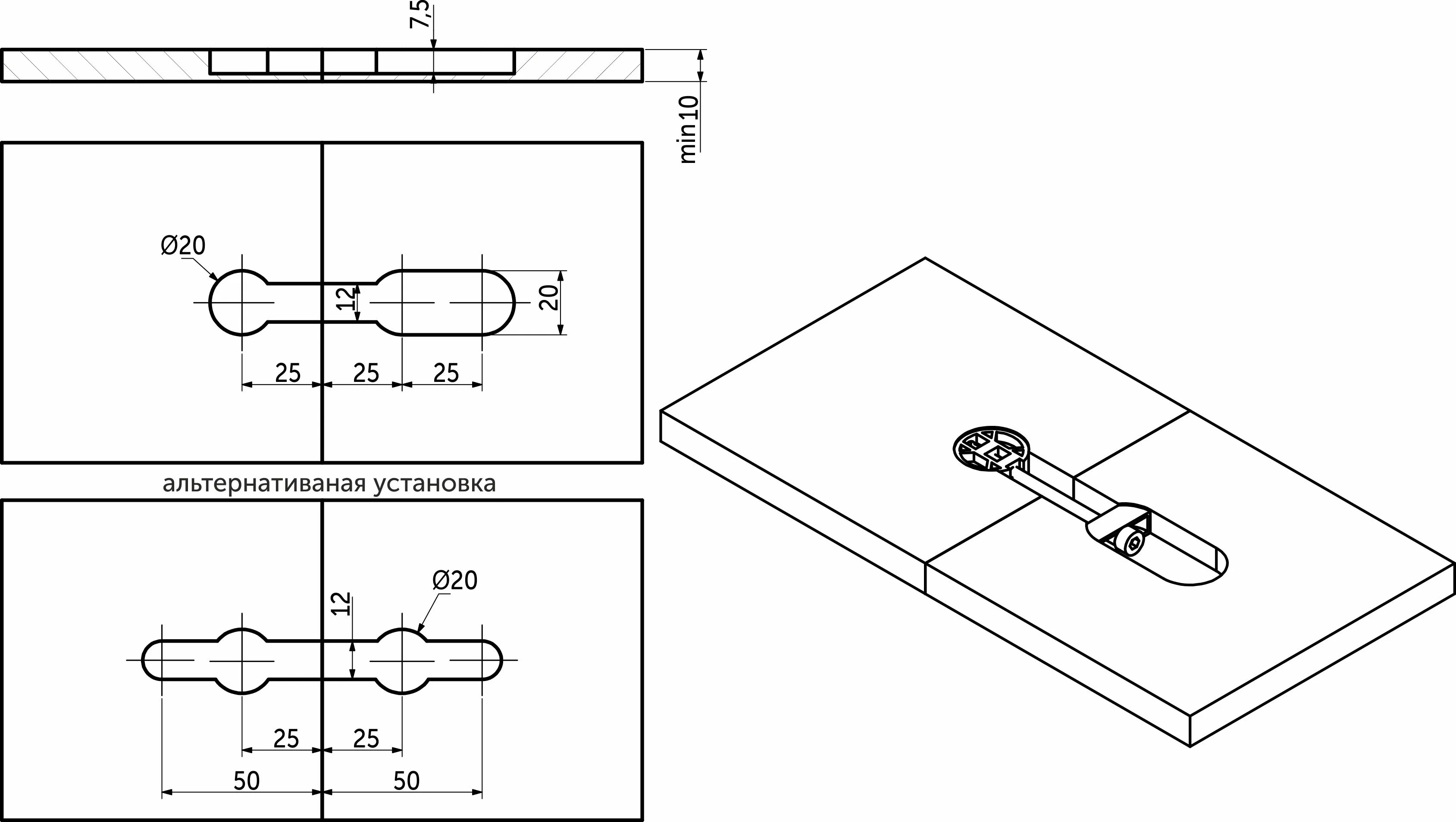 Стяжка для компакт плиты K TOP (1 к-т=2стяжки+2винта+2 ответные планки) Italiana Ferramenta