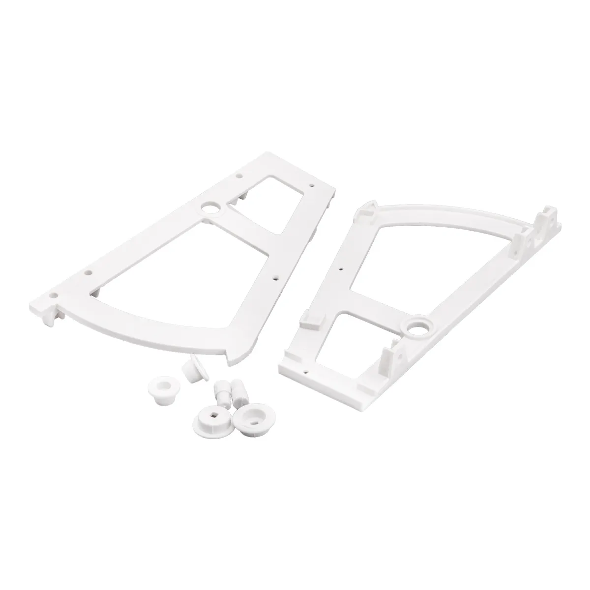Крепление пластиковое 1-уровневое (веер) предназначено для изготовления ящика для обуви с откидными полками. Крепление монтируется на боковые стенки ящика (справа и слева), также к креплению крепится фасад и полка (или несколько полок) из ДСП, фанеры или дерева. При открывании фасада откидывается полка для обуви.