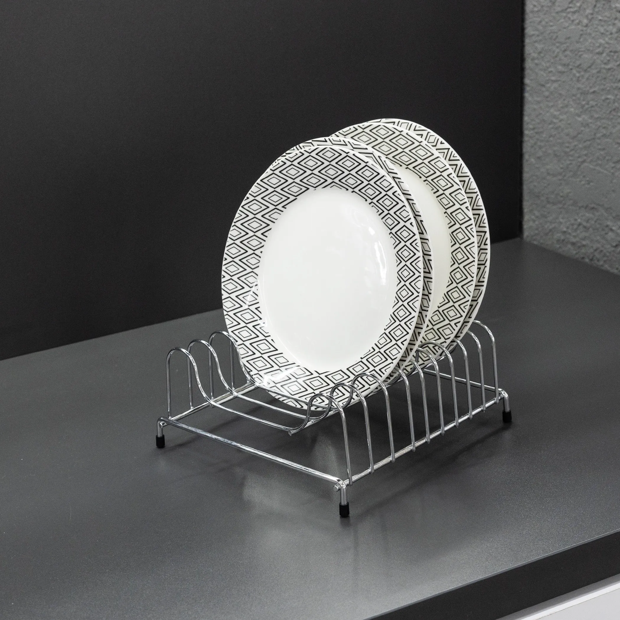Подставка предназначена для сушки и/или хранения тарелок на поверхности столешницы
