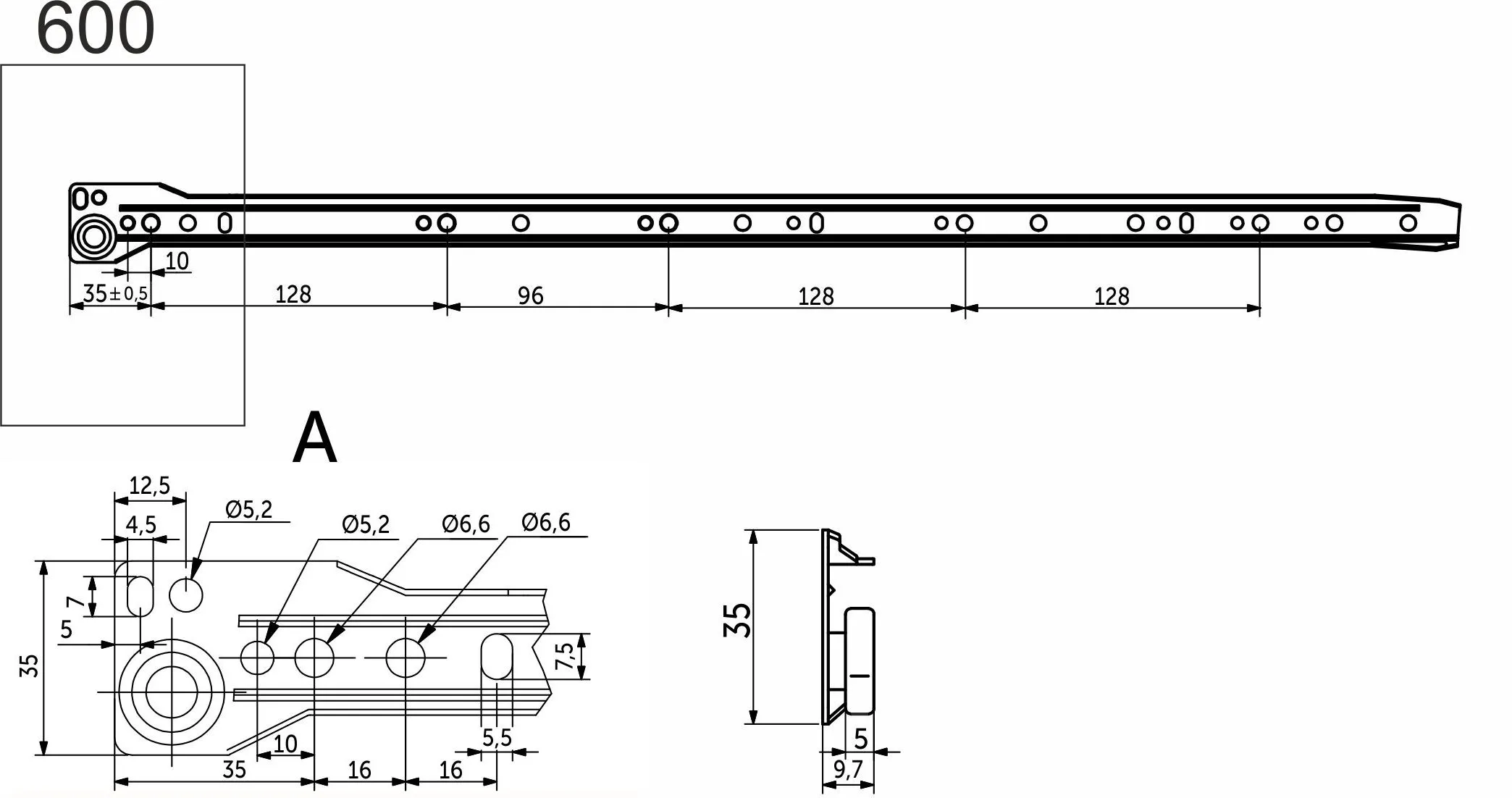 | Длина направляющей (L, мм) | 600 |