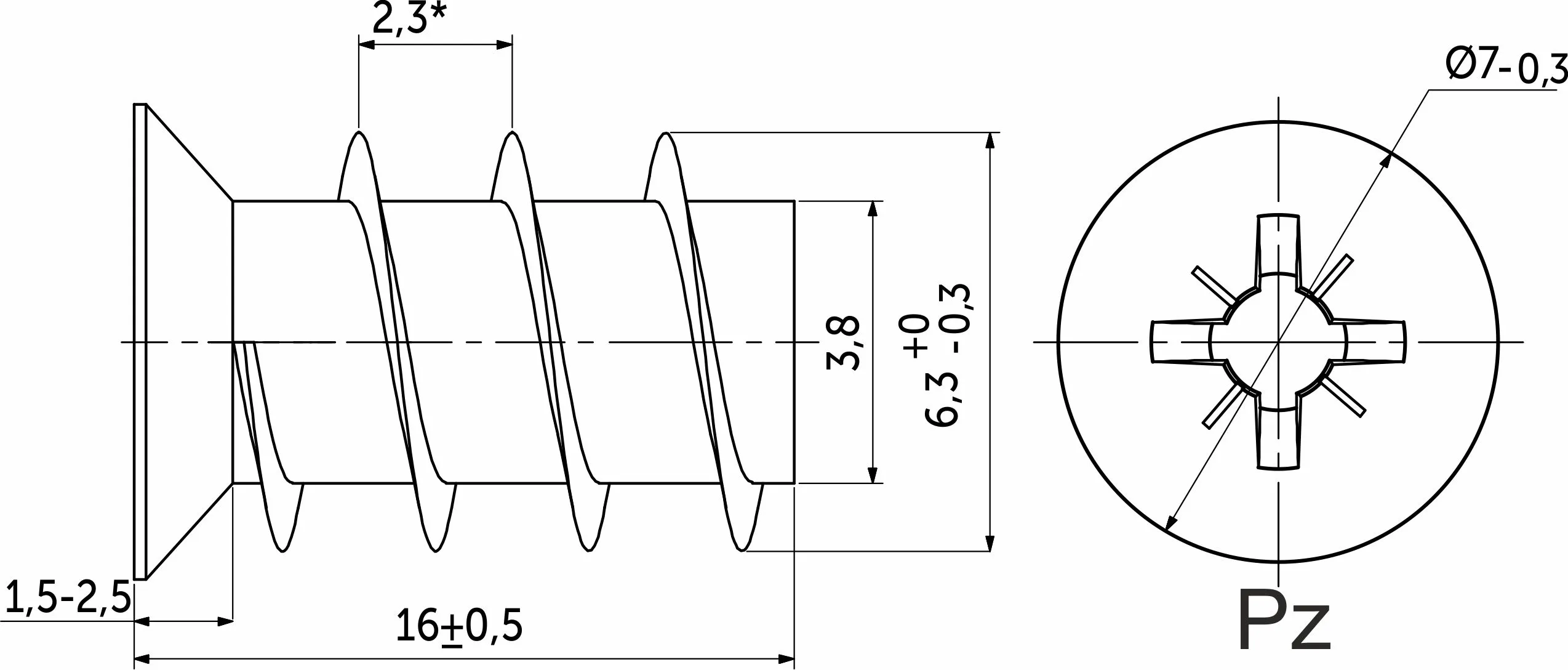 Длина 16 мм (длина данного шурупа считается как полная длина всего изделия).