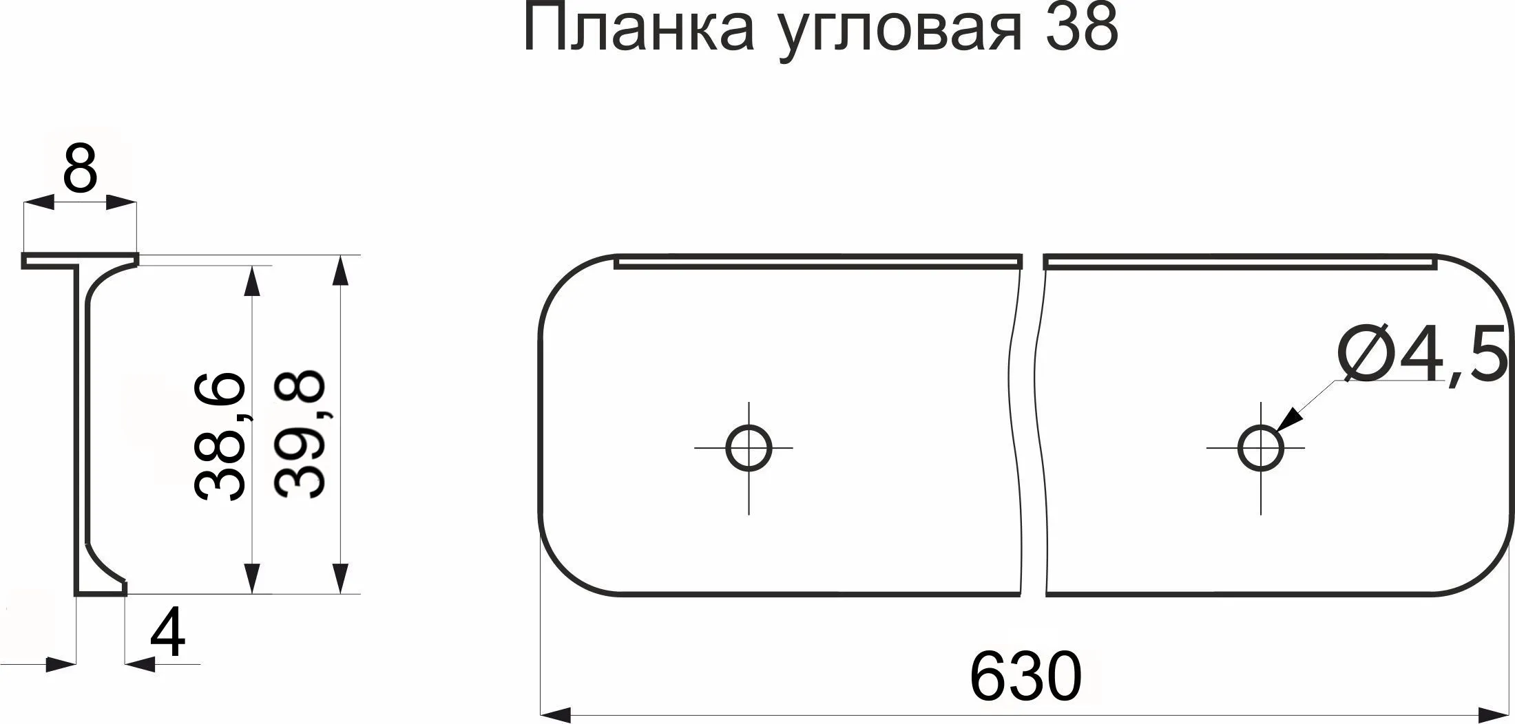 Планка торцевая к столешнице 38 R8 левая алюминий AKS