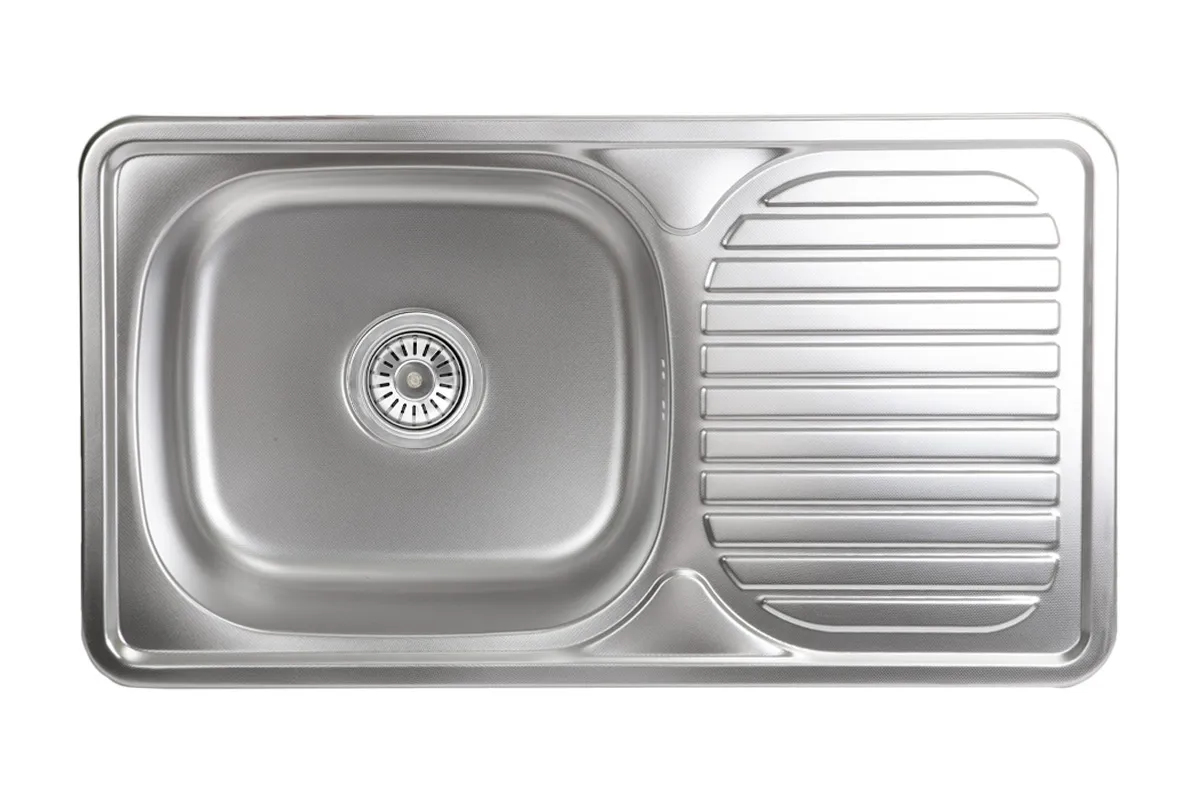 Мойка н/сталь, прямоугольная одночашевая, 760*420мм, матовый хром, врезн на столешницу, AKS (0,8мм)