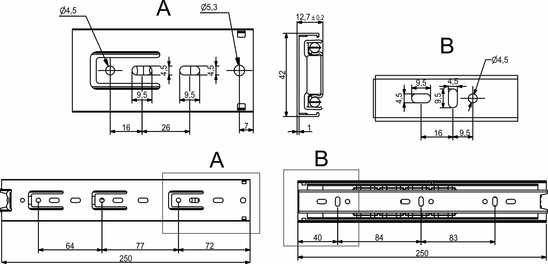 Направляющая шариковая L-250 h=42 GRIDLI B