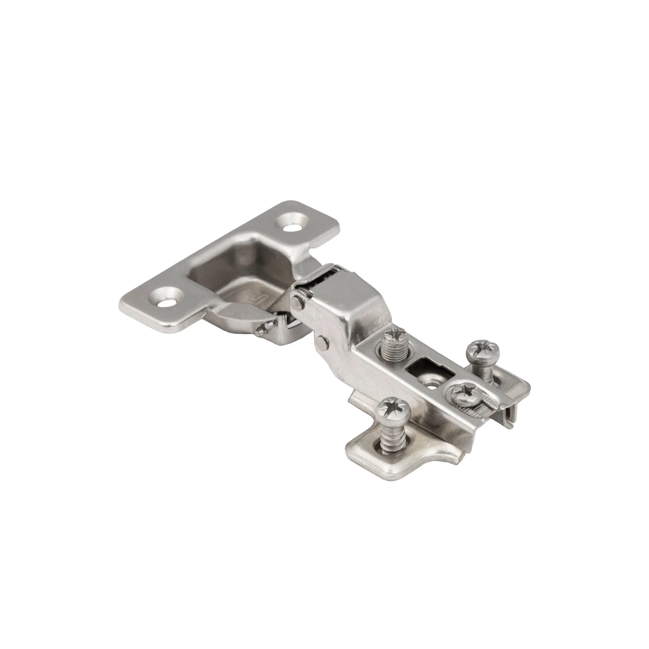 Для простоты монтажа и регулировки данная петля оснащена механизмом надвижного монтажа slide-on и регулировочным винтом с резьбой 10 мм. Регулировка по глубине -винтовая.