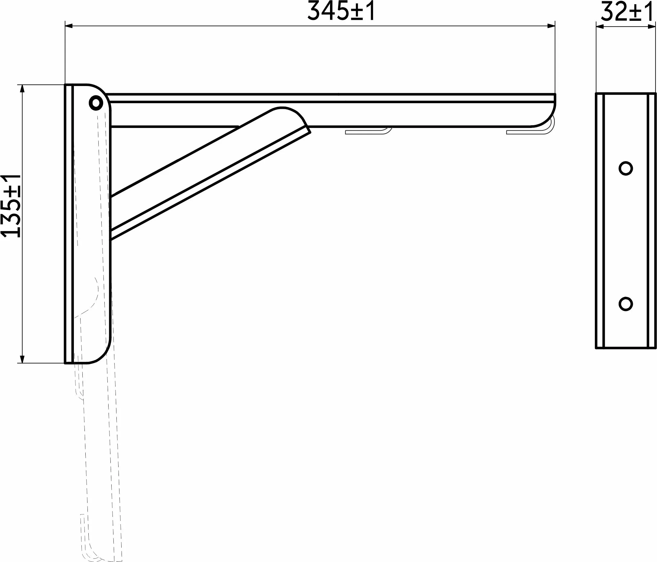 Полкодержатель складной Модель 2, 350*135*30 черный AKS