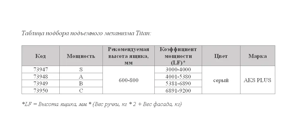Подъемный механизм с регулировкой мощности и длины рычага предназначен для установки на ящики с двойным (ломающимся) фасадом и открытием вверх. Подъемник для фасадов кухни имеет регулировки в трех плоскостях для выравнивания фасадов и регулировки усилий. В комплекте имеются все необходимые петли, 2 механизма, демпфера, крепления к фасаду, саморезы, шаблон. Подъемный механизм кухонных фасадов имеет крепления Clip on к фасаду и корпусу ящика для удобного и быстрого монтажа / демонтажа фасада. Имеет функцию фиксации в любом положении и систему доводчика, что обеспечивает плавное и бесшумное закрытие. Также имеет телескопические штанги для универсального подбора под высокие фасады. Допустимые размеры по высоте фасада до 800 мм и ширине до 1200 мм. Минимальная глубина полки 250 мм.