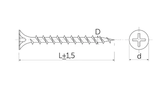 Саморез для гипсокартона для крепления к дереву имеет крупный шаг резьбы и шлиц PH.