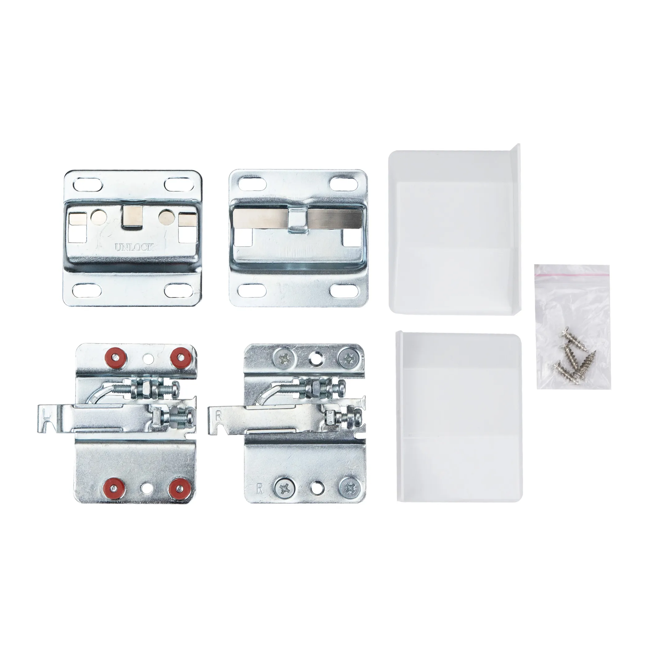 Материал: сталь + пластик/ Нагрузка на пару - 250 кг. Возможность регулировки: высота +/-5 мм, глубина max 15 мм (при регулировке навеса нельзя использовать шуруповерт). Надёжно крепится на специальную монтажную планку со стальной пластиной, которая жёстко фиксирует крючок навеса и не допускает его смещения. Крепится к корпусу ящика на втулках под запрессовку плюс дополнительно фиксируется саморезами, что создает более надежное соединение. После монтажа корпус навеса и отверстие в задней стенке закрываются белыми заглушками. В комплект входят: 2 навеса, 2 монтажные планки, 2 заглушки белого цвета и комплект саморезов для крепления к корпусу ящика.