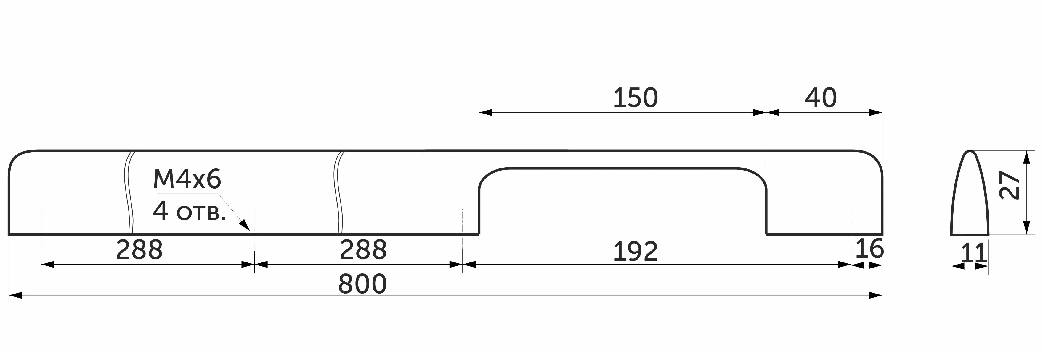 | Длина общая (С, мм) | 800 |