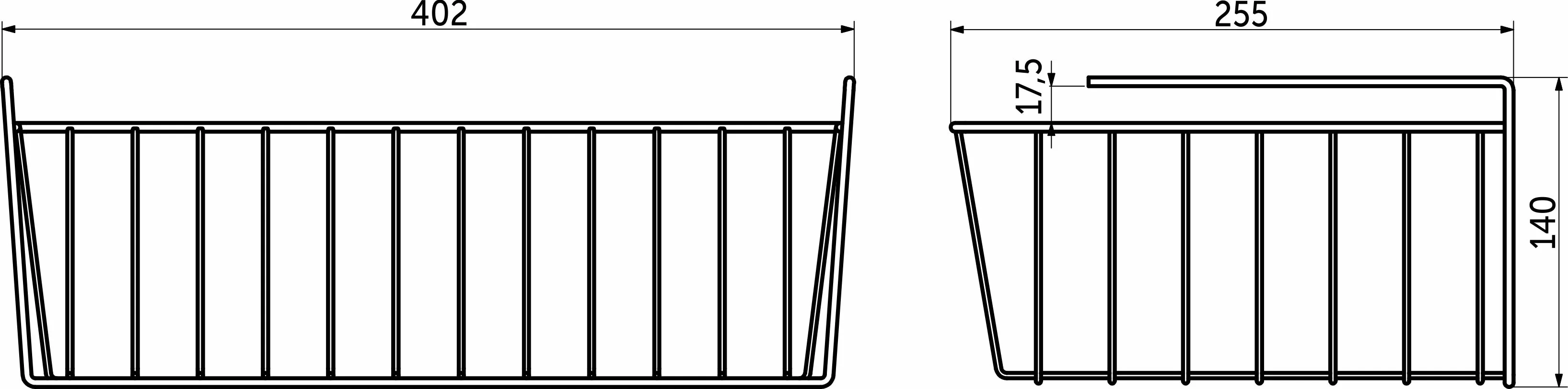 Корзина подвесная 400*255*140, черный РФ (на полку)