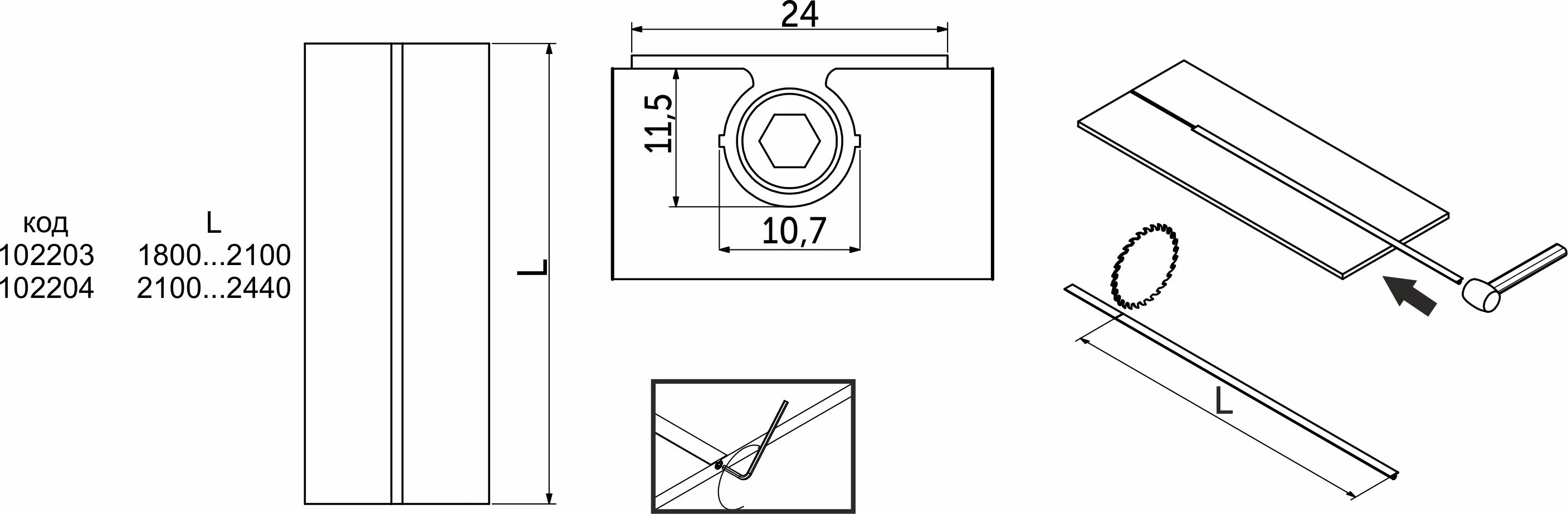 | Длина (L, мм) | 2100 |