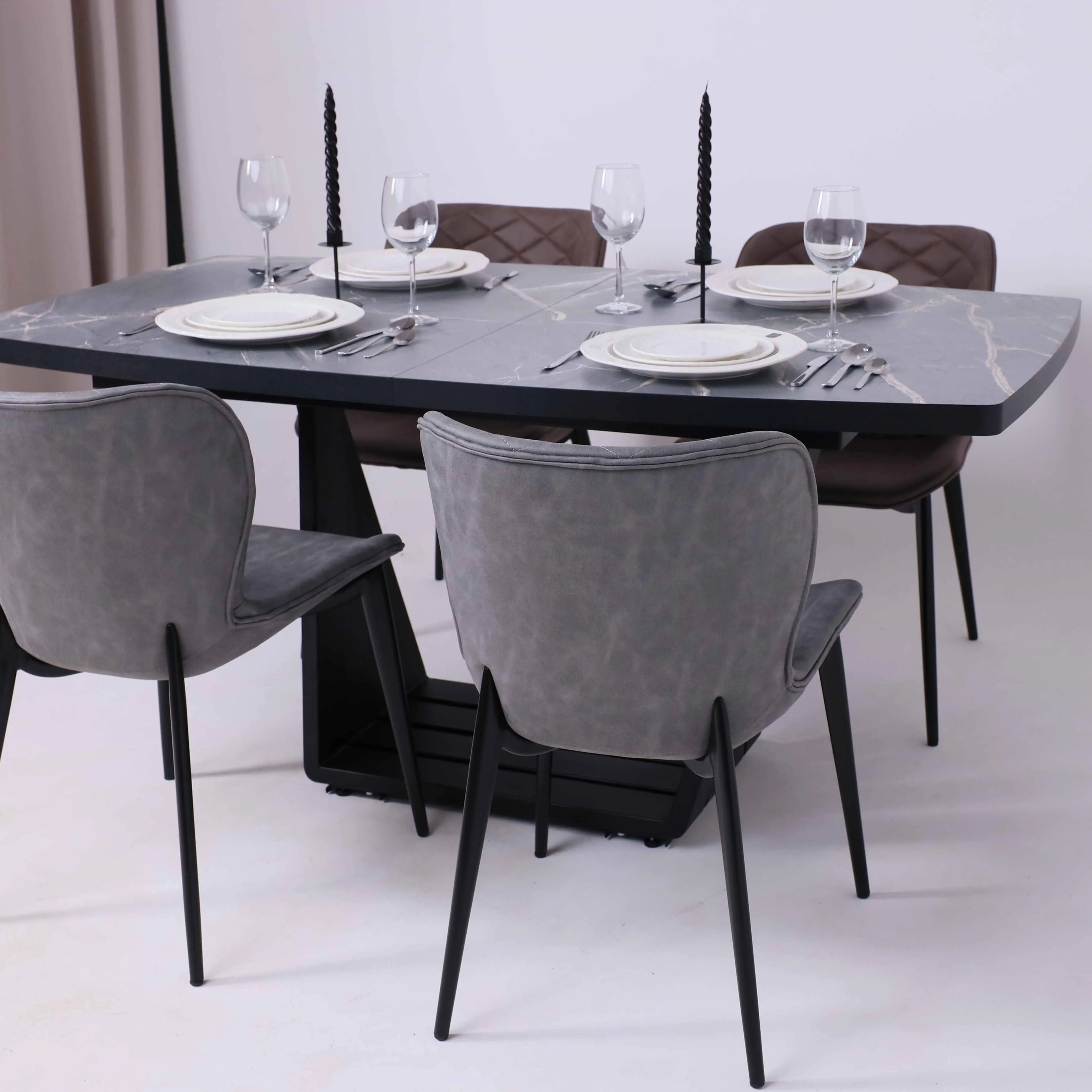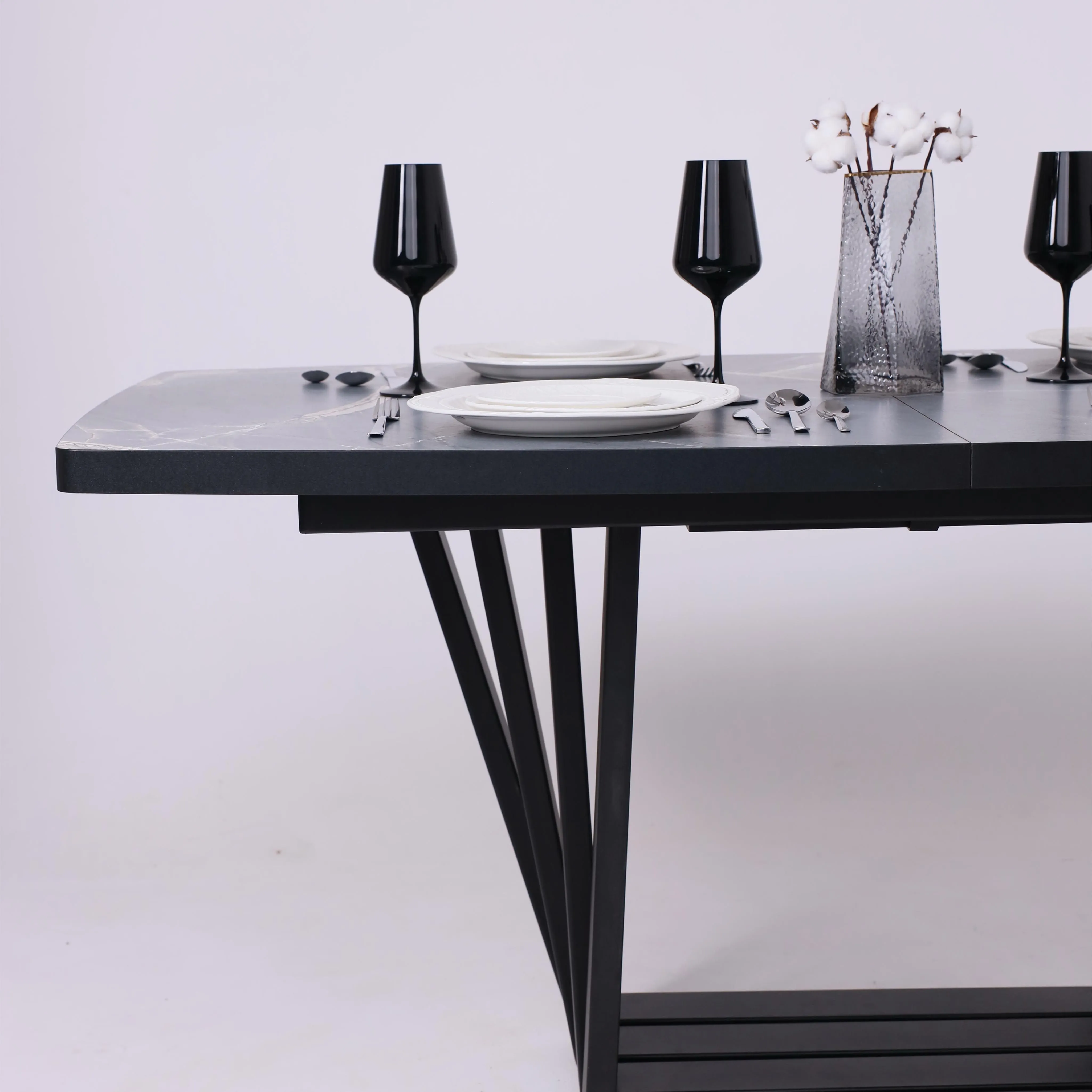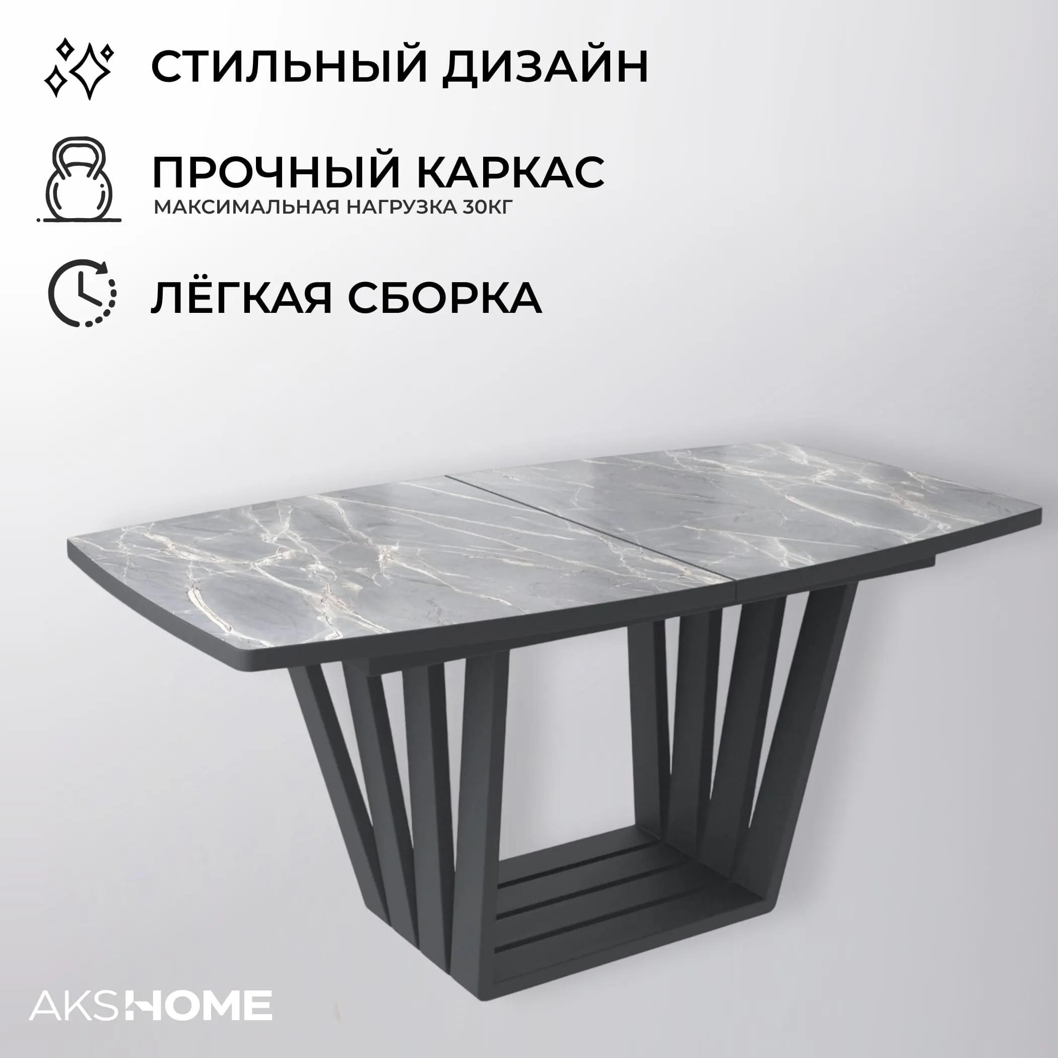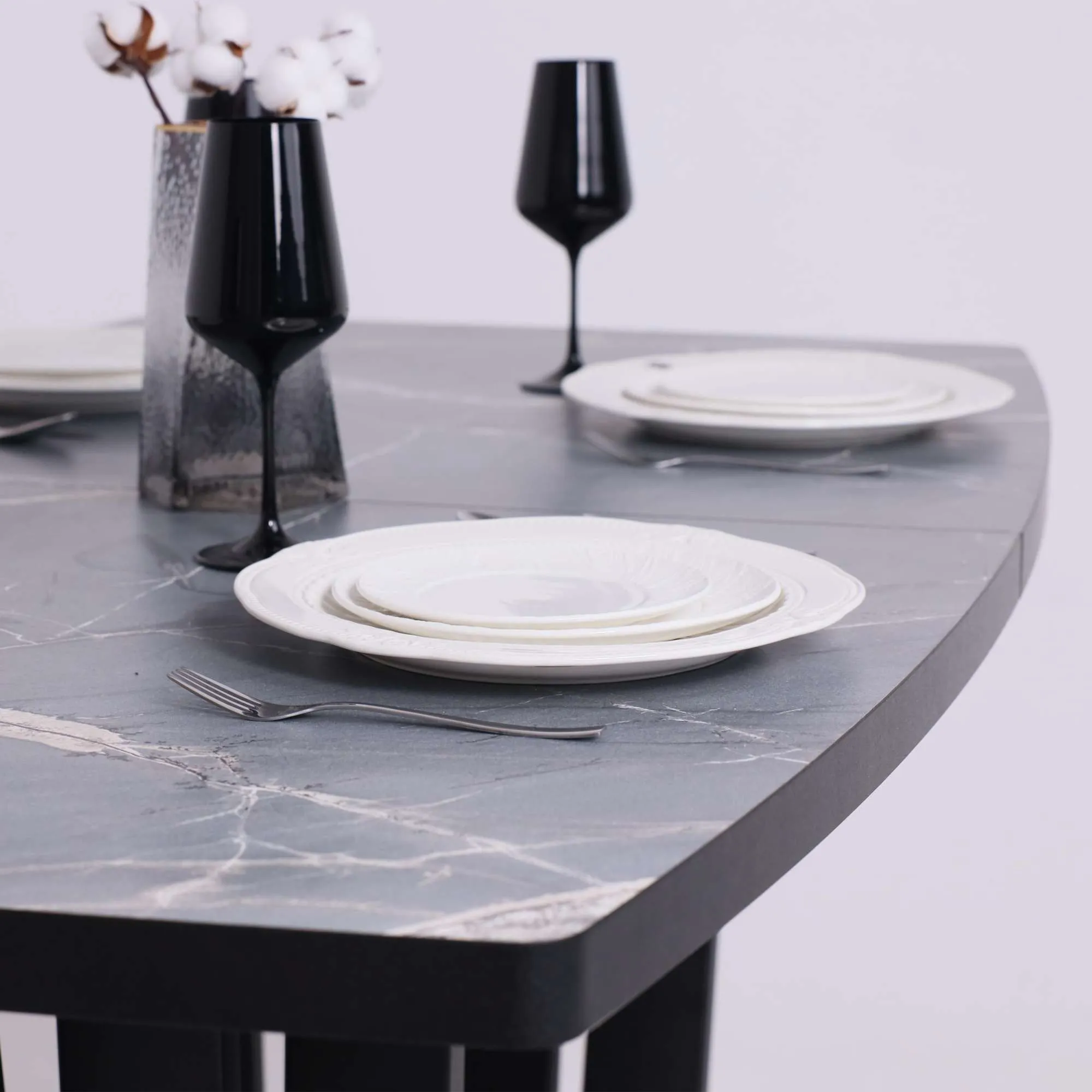 Стол TIRK RADIAL-94, раздвижной 94(126)х64, Дымчатая керамика/Чёрный