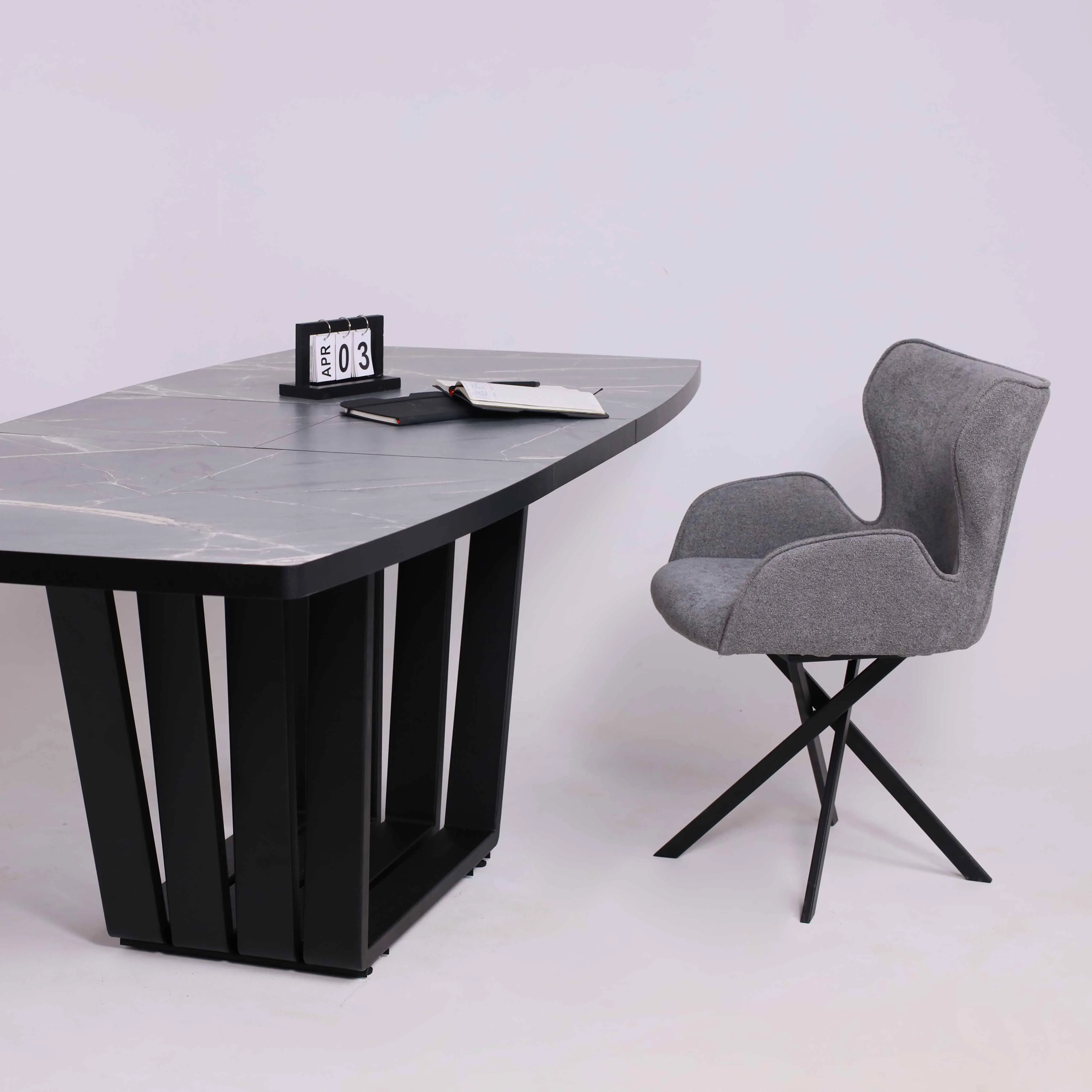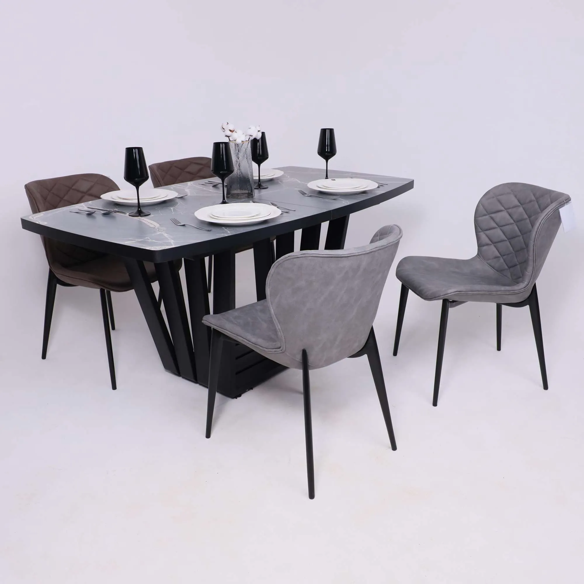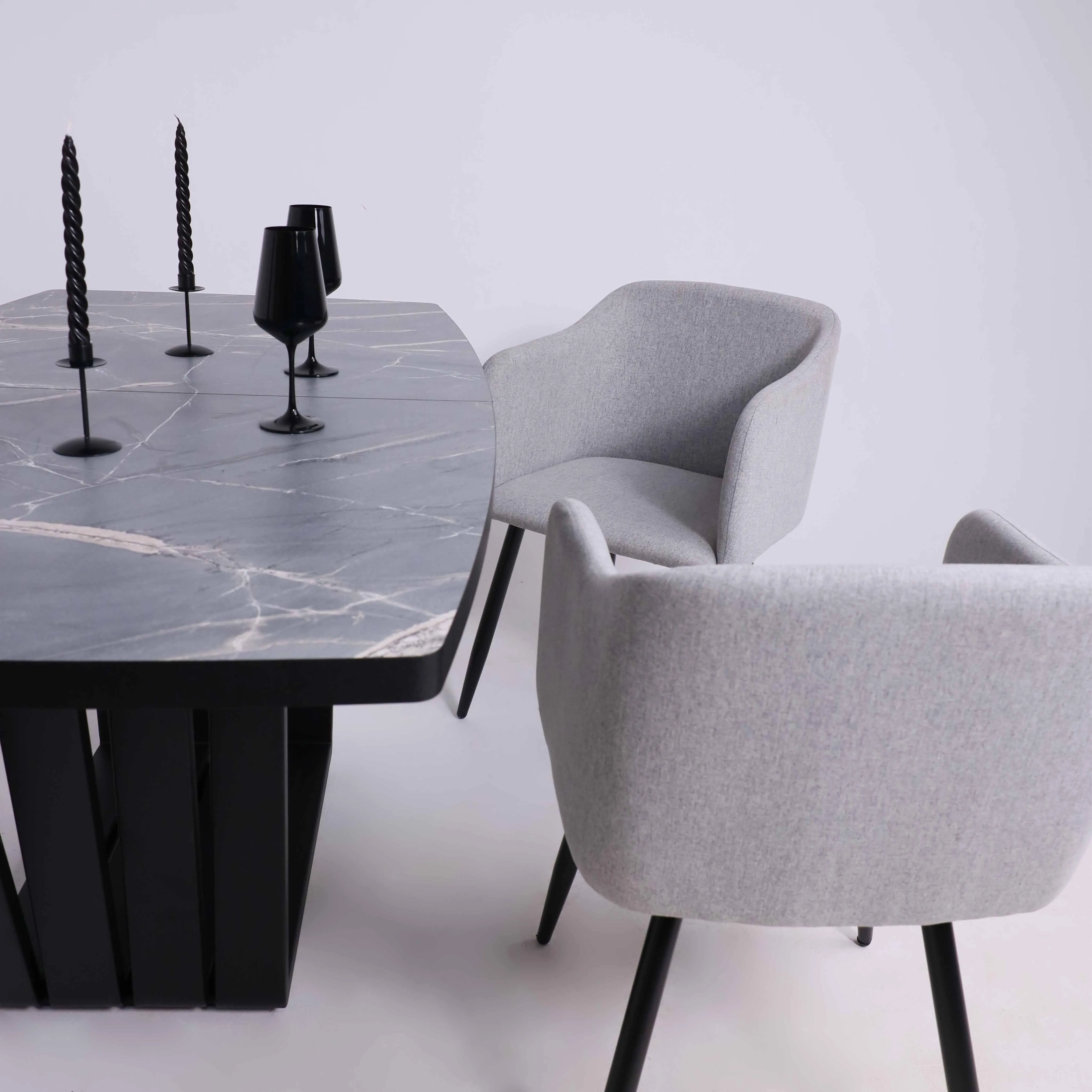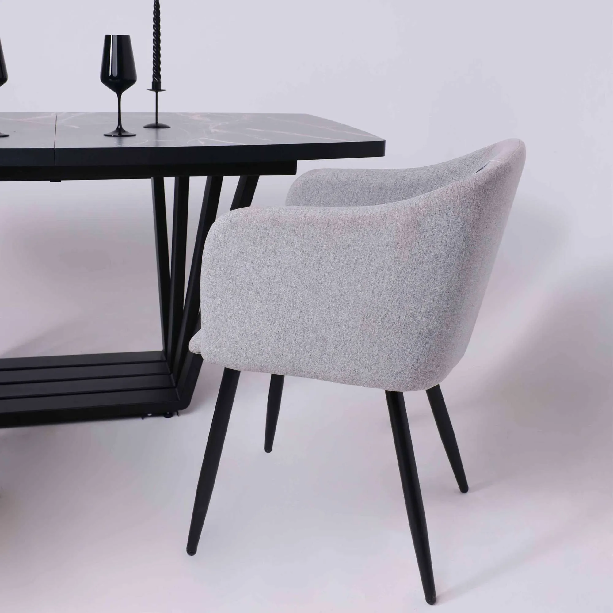 Стол TIRK RADIAL-94, раздвижной 94(126)х64, Дымчатая керамика/Чёрный