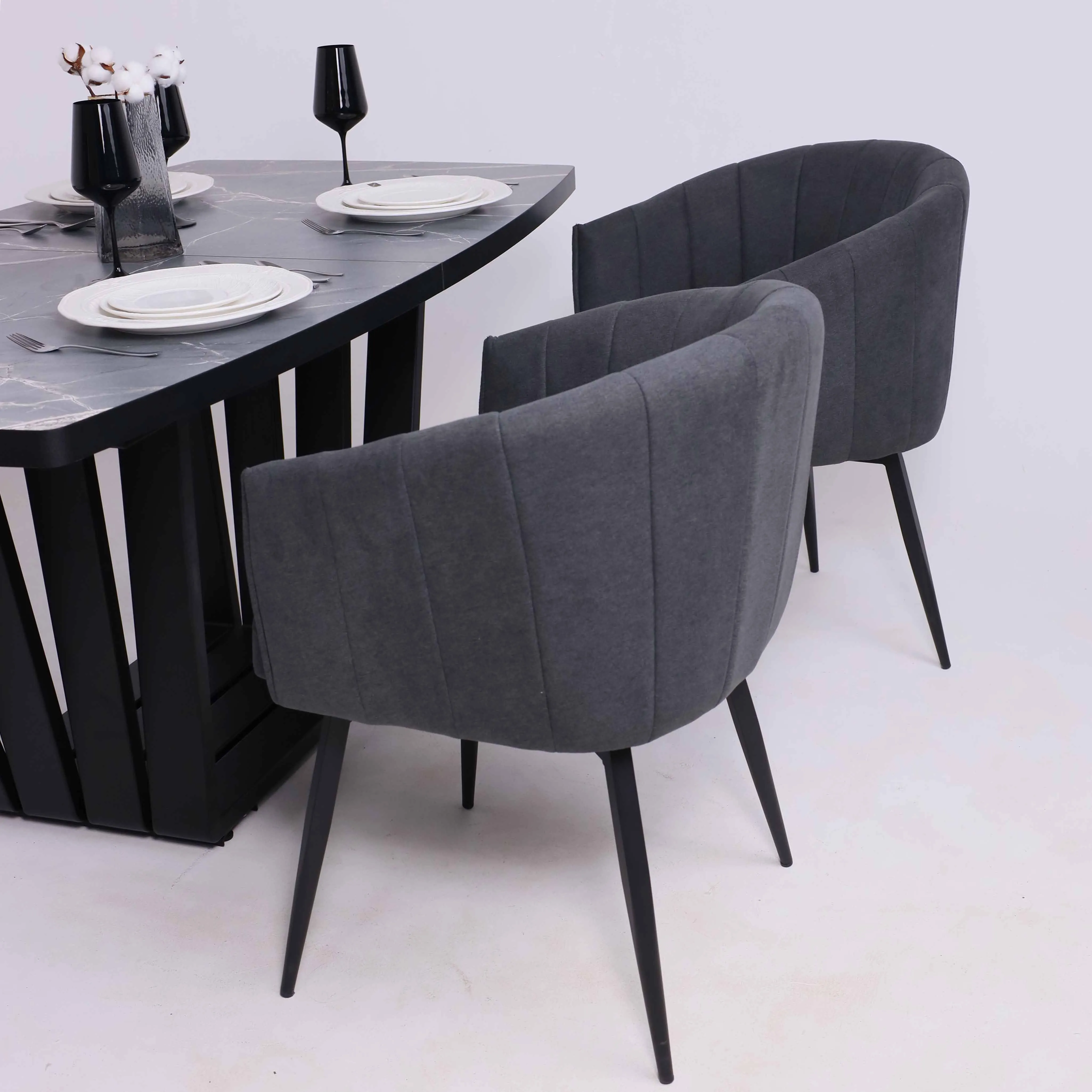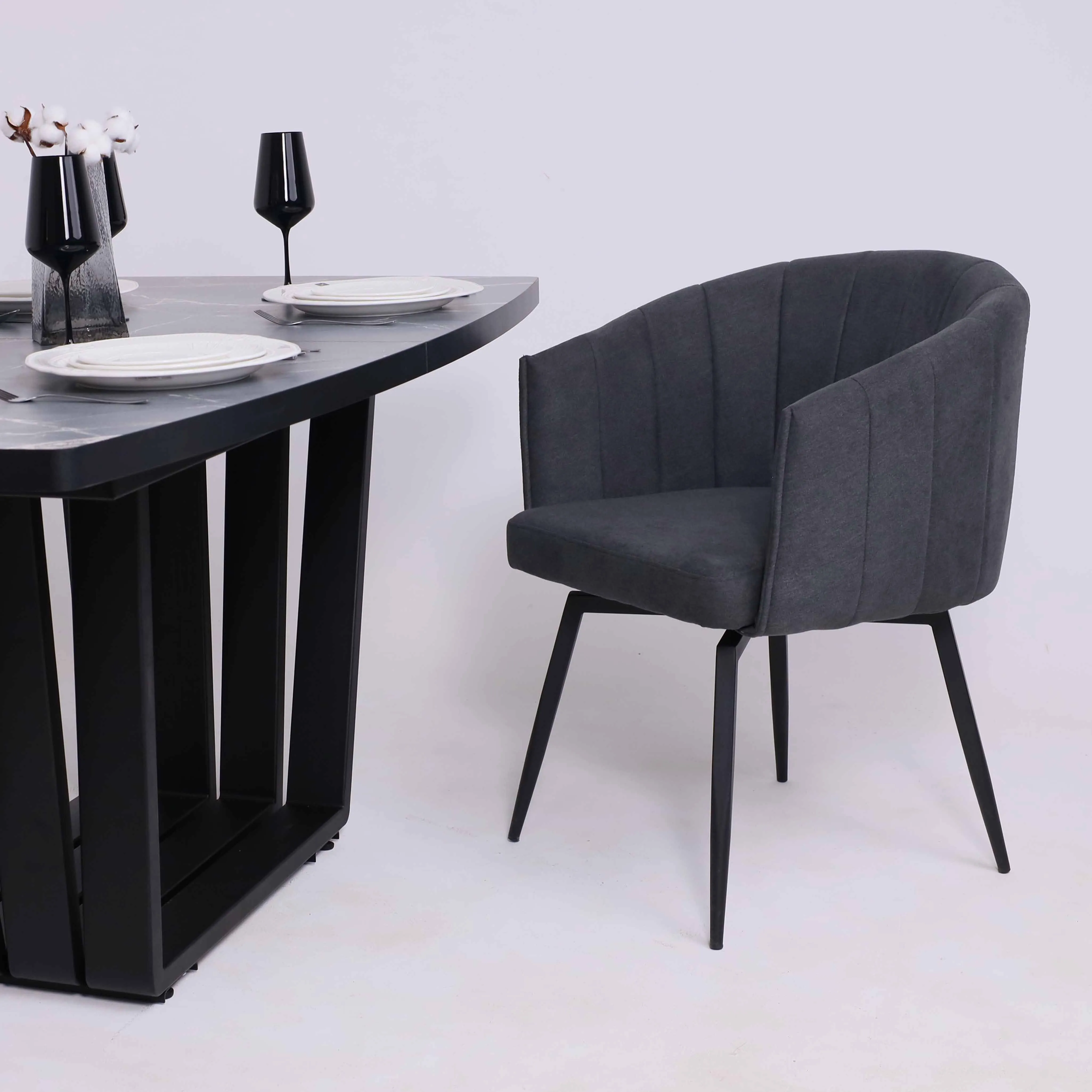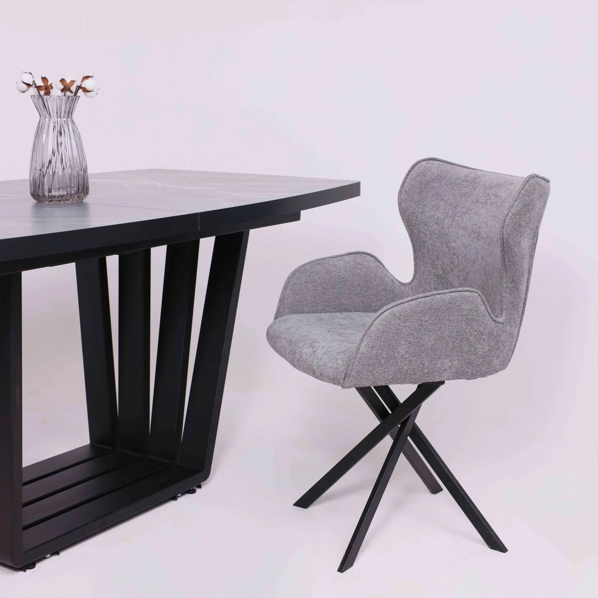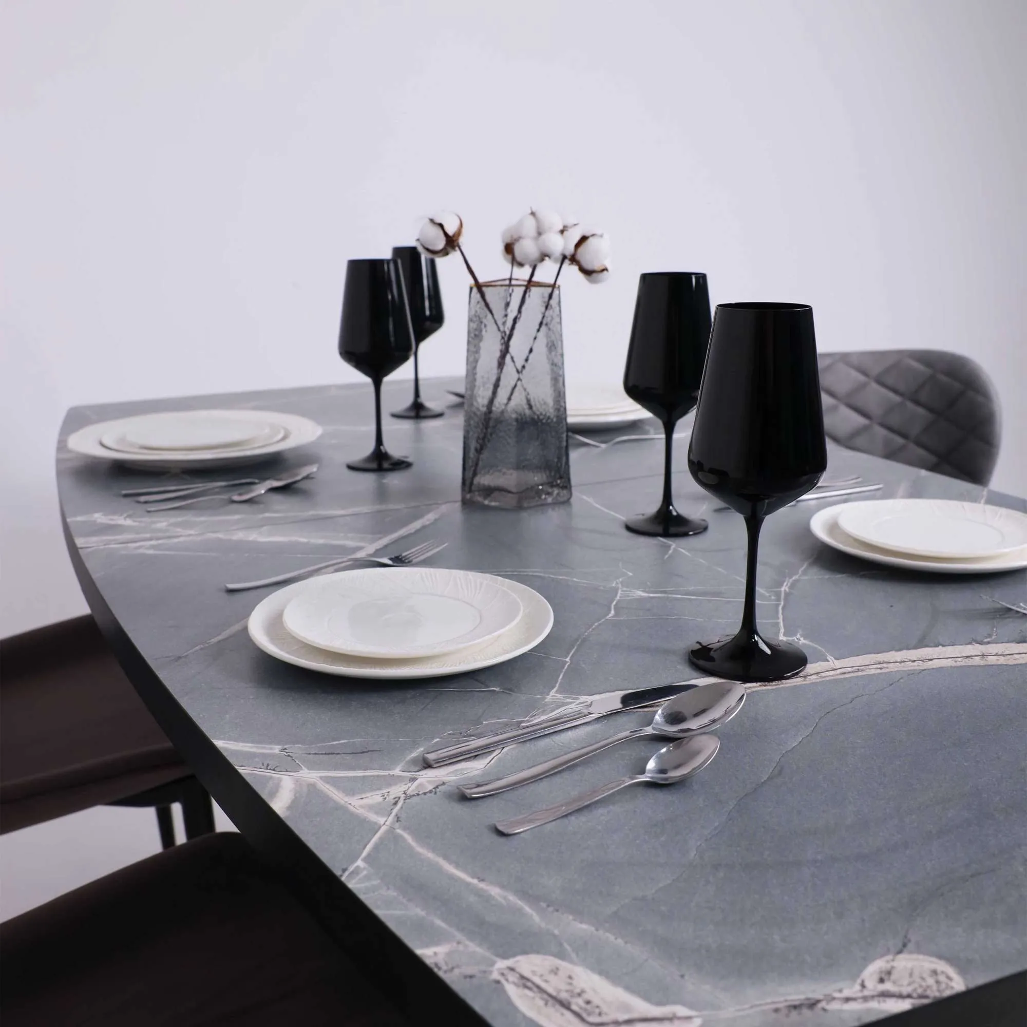 Стол TIRK RADIAL-94, раздвижной 94(126)х64, Дымчатая керамика/Чёрный