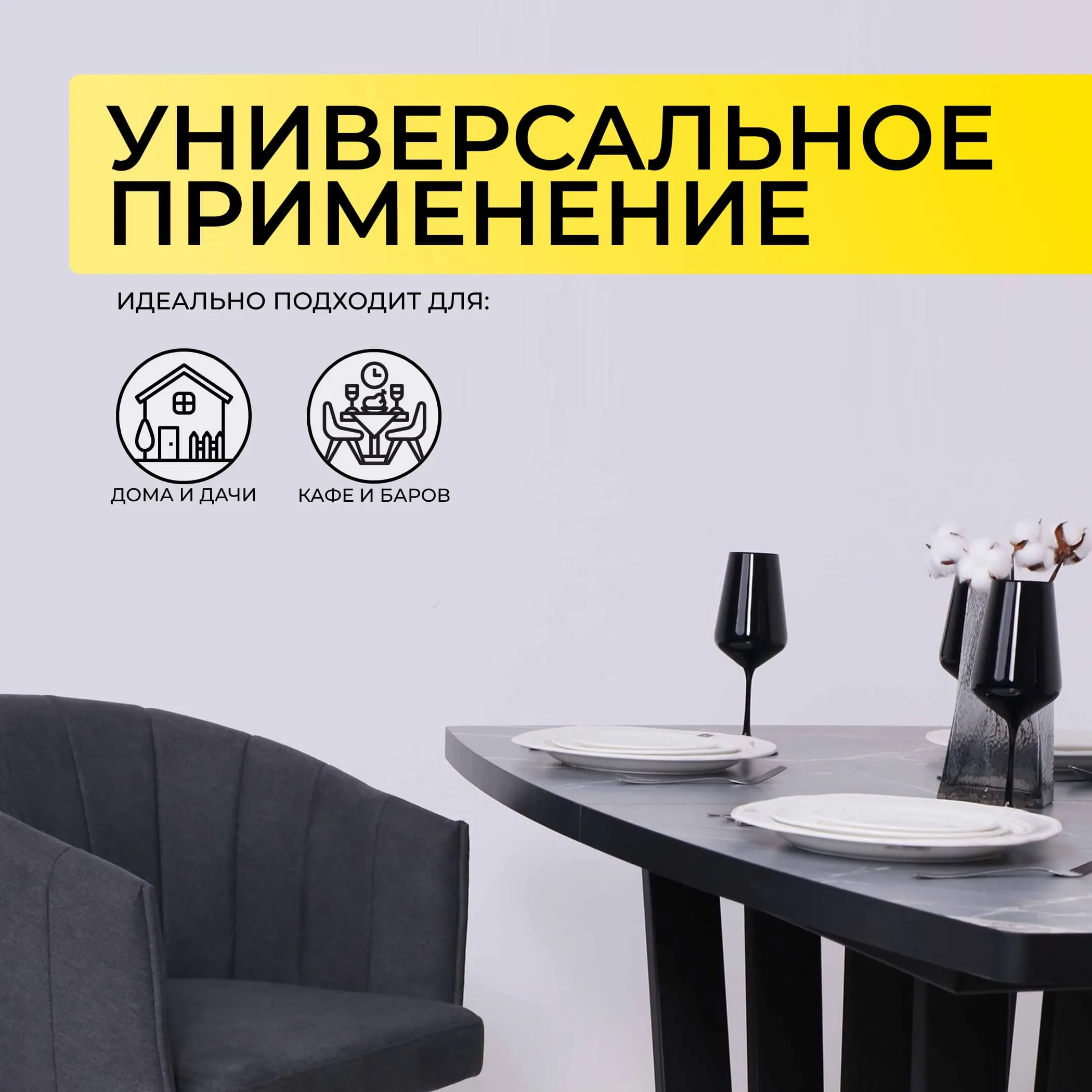 Стол МЕХИКО, пластик премиум 3Д, D950, Камень черный/ Черный матовый