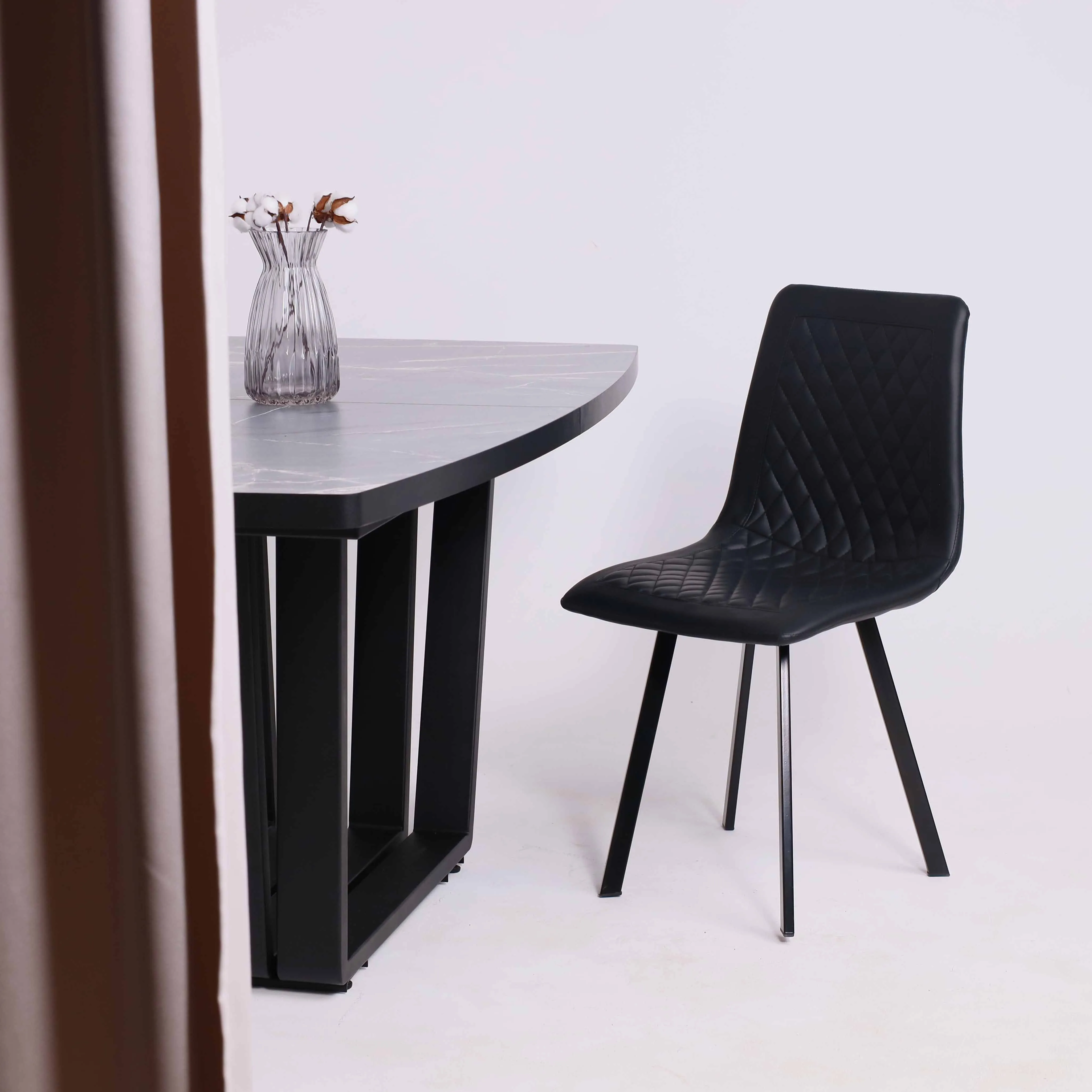 Стол КОРСИКА, фотопечать 1200(1515)*800, Мрамор черный 9/Черный матовый