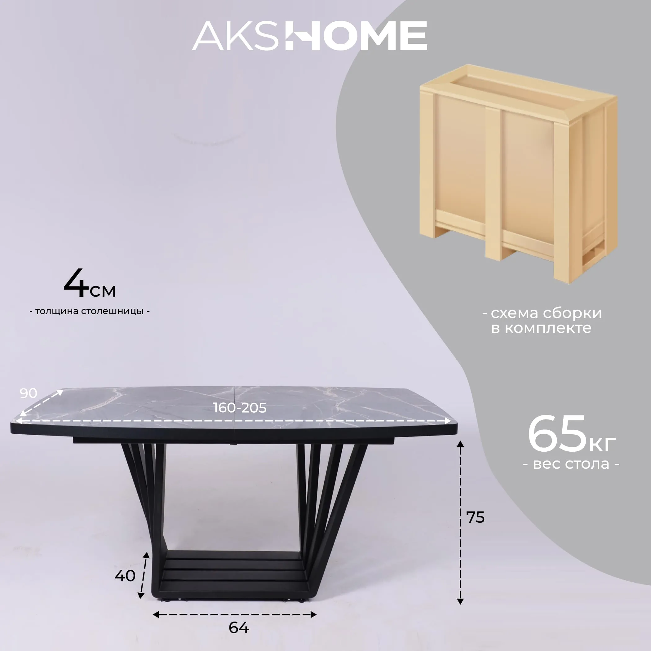 | Толщина столешницы, мм | 40 |