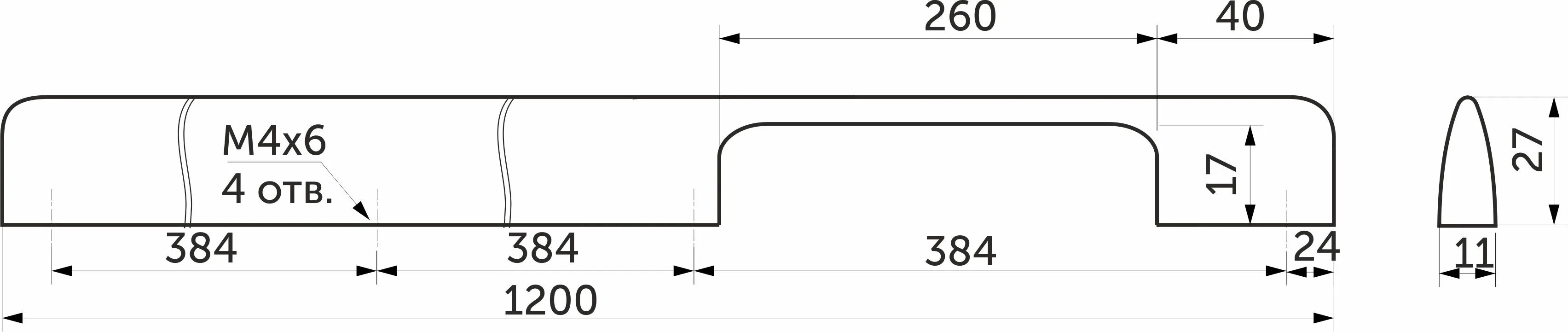 | Длина (L, мм) | 1152 |