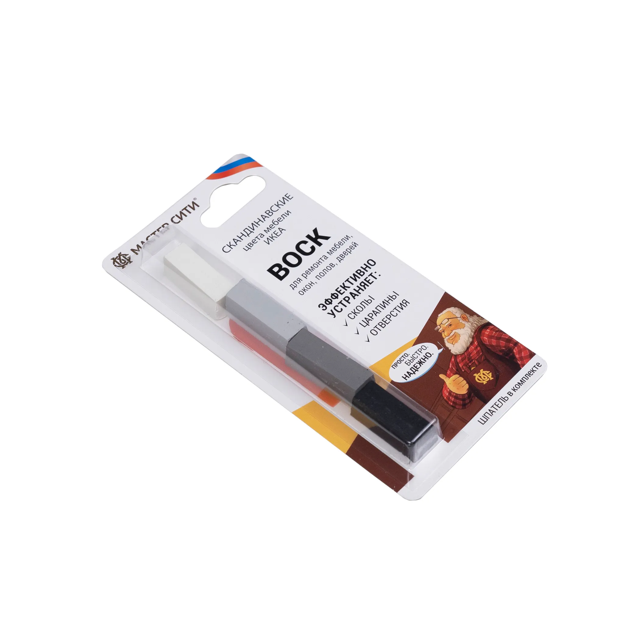 Воск мебельный серый мягкий (набор 4 шт) Мастер Сити (со шпателем)