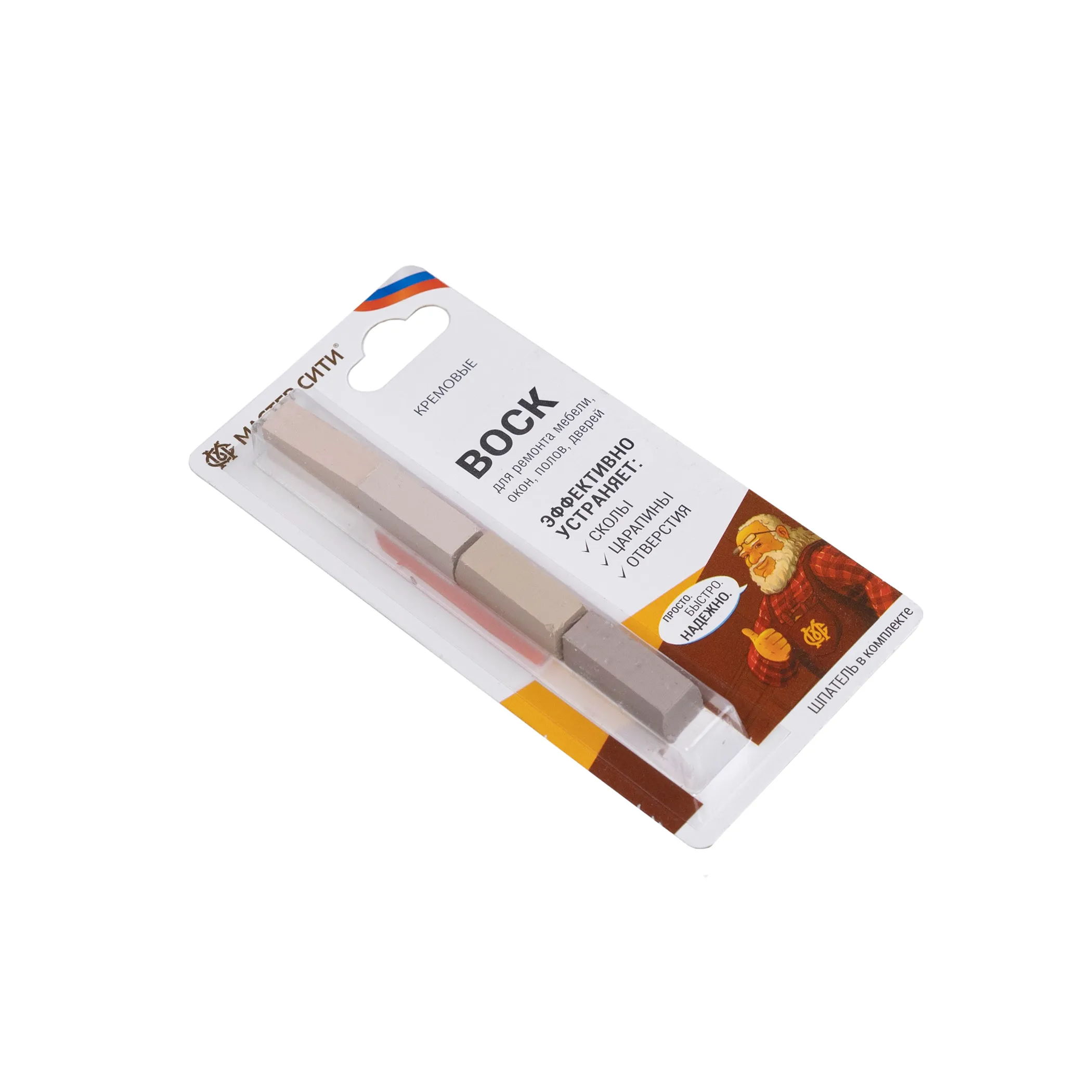 Воск мебельный мягкий, который способен легко и быстро отреставрировать сколы, вмятины, трещины и отверстия на деревянных и пластиковых поверхностях (мебель, окна, двери), не подверженные интенсивной эксплуатации.