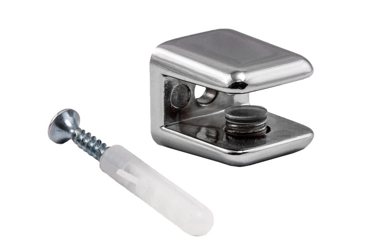 Полкодержатель для стекла регулируемый используется для монтажа стеклянных полок толщиной 6-8 мм.