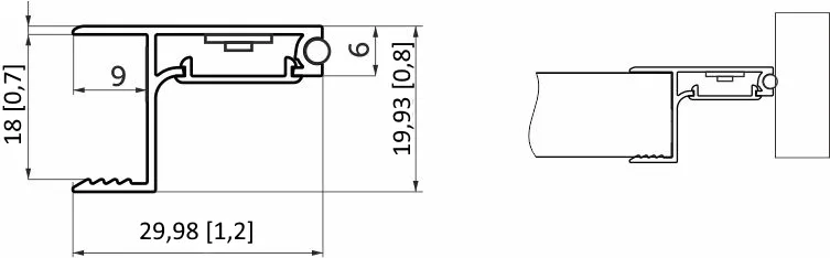 Профиль алюминиевый накладной/торцевой CAPELLA-3018A, с экраном, цвет алюминий, 2м (для 18 ДСП), AKS