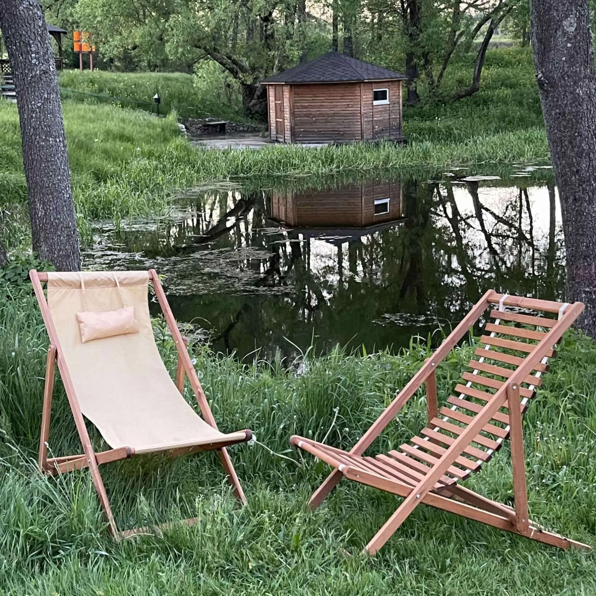 Кресло-шезлонг DYATEL сиденье из дерева сосна (цвет дуб)