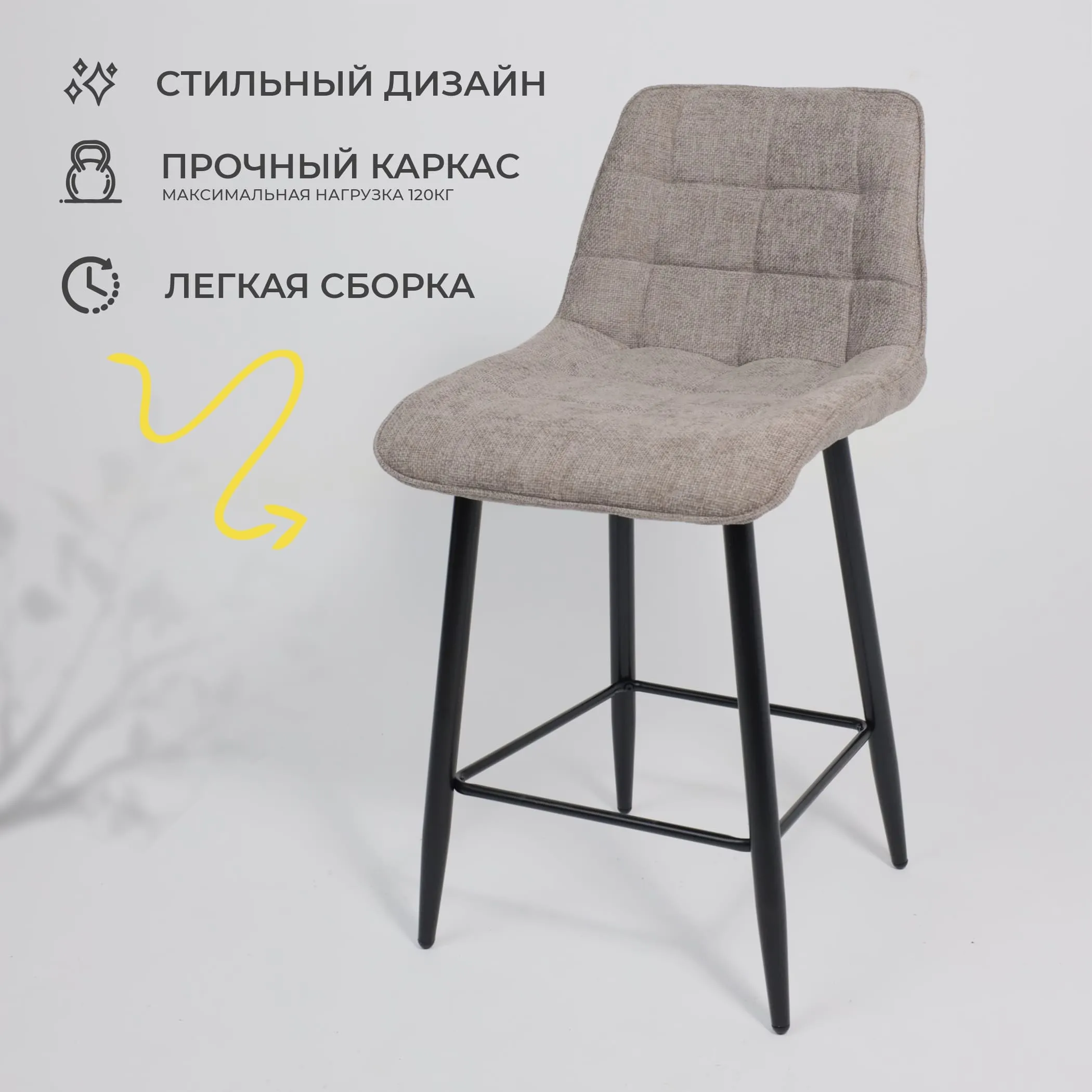 Стул барный LOGOS, серый шенилл Ote Canna 452/черный