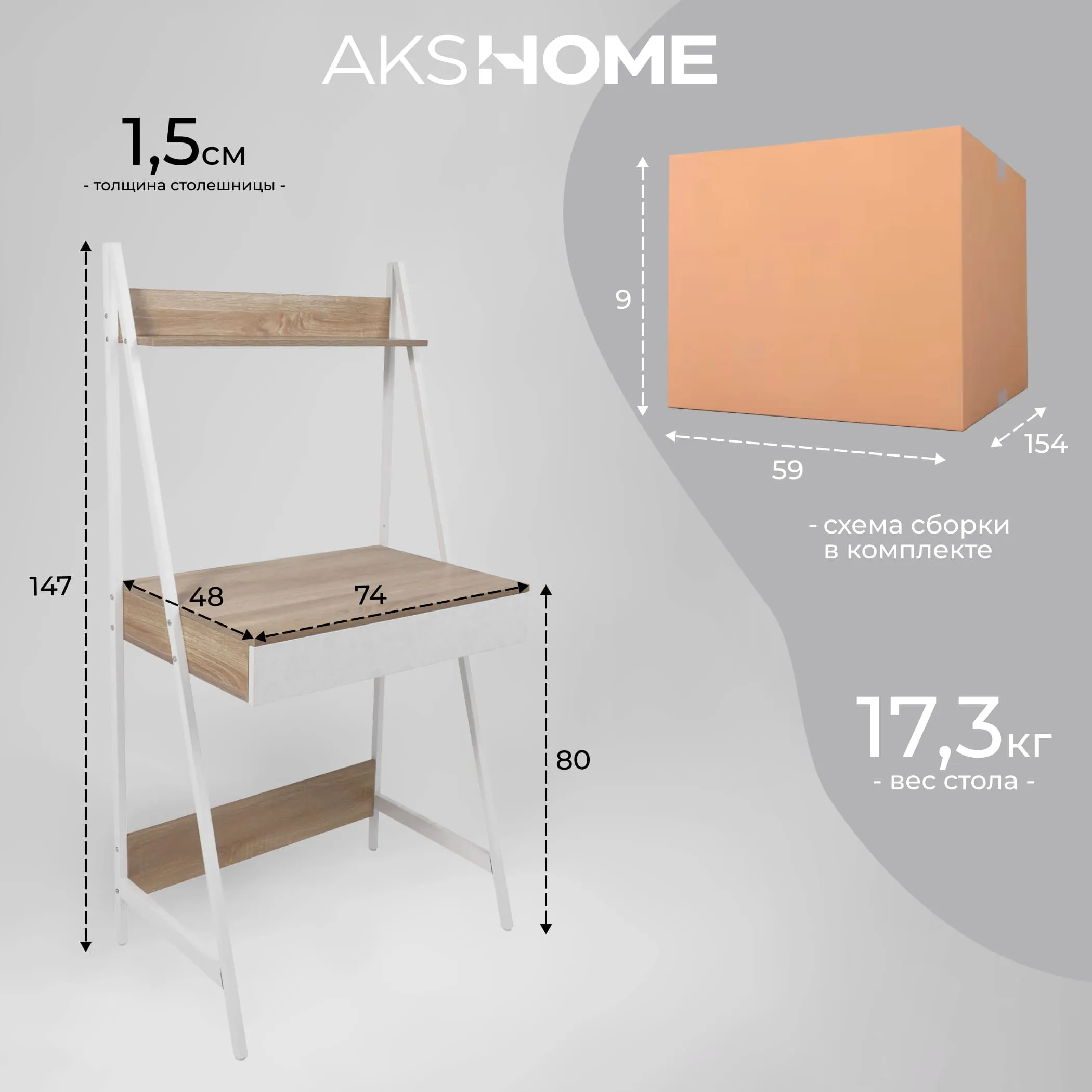 Стол письменный SHAPE, светлый дуб/белый металл, 740*480*1465