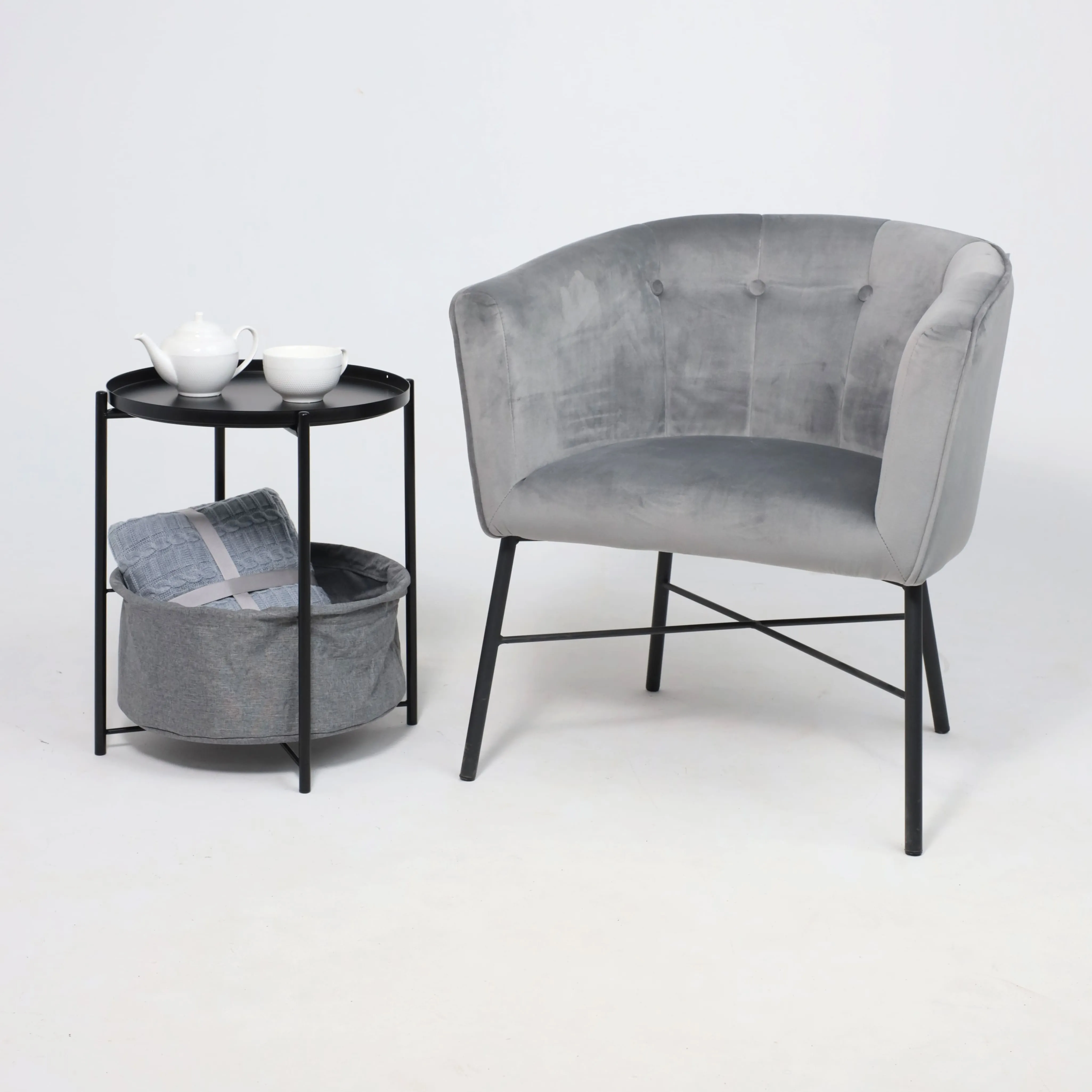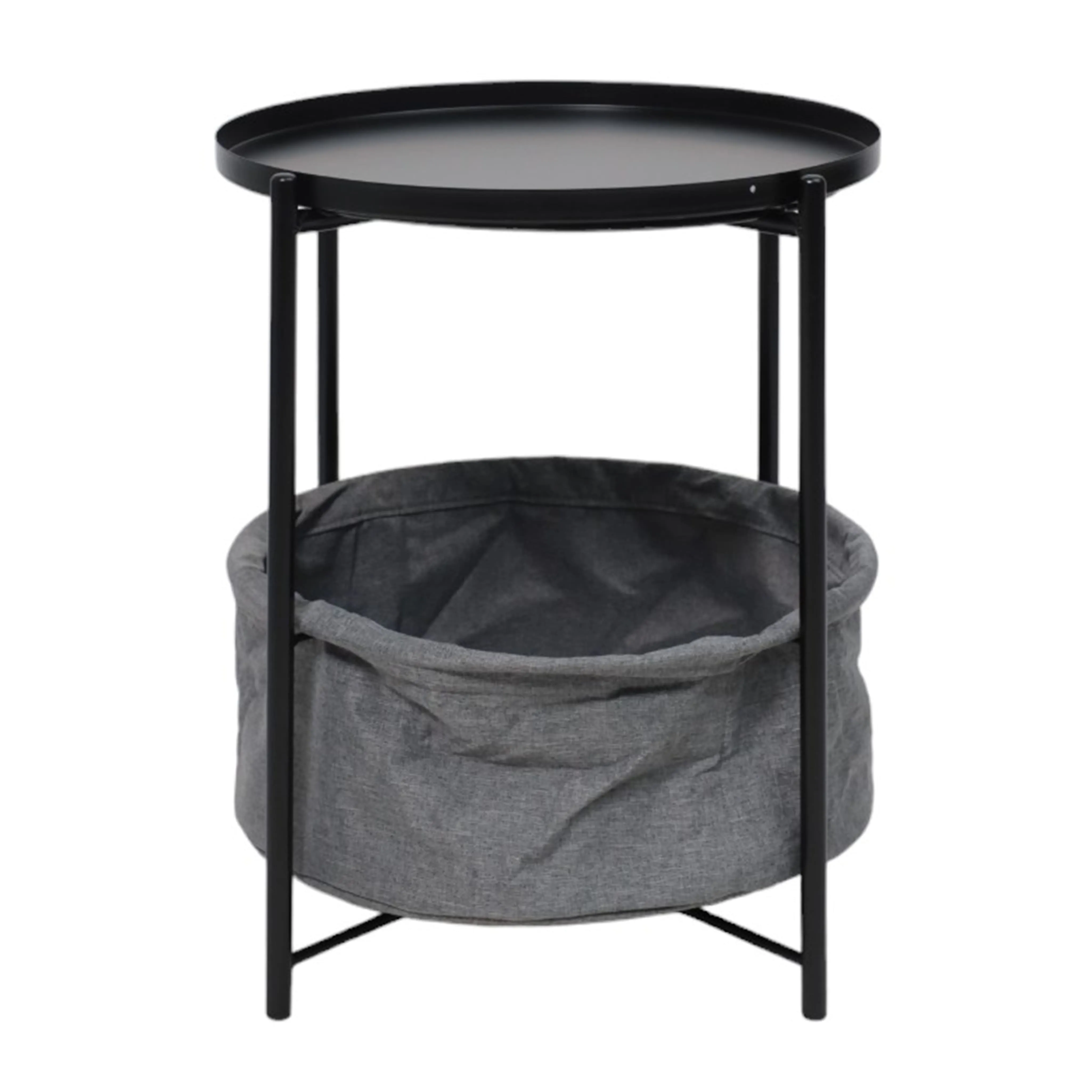 Стол журнальный TRENT, черный с серой корзиной, 420*420*520