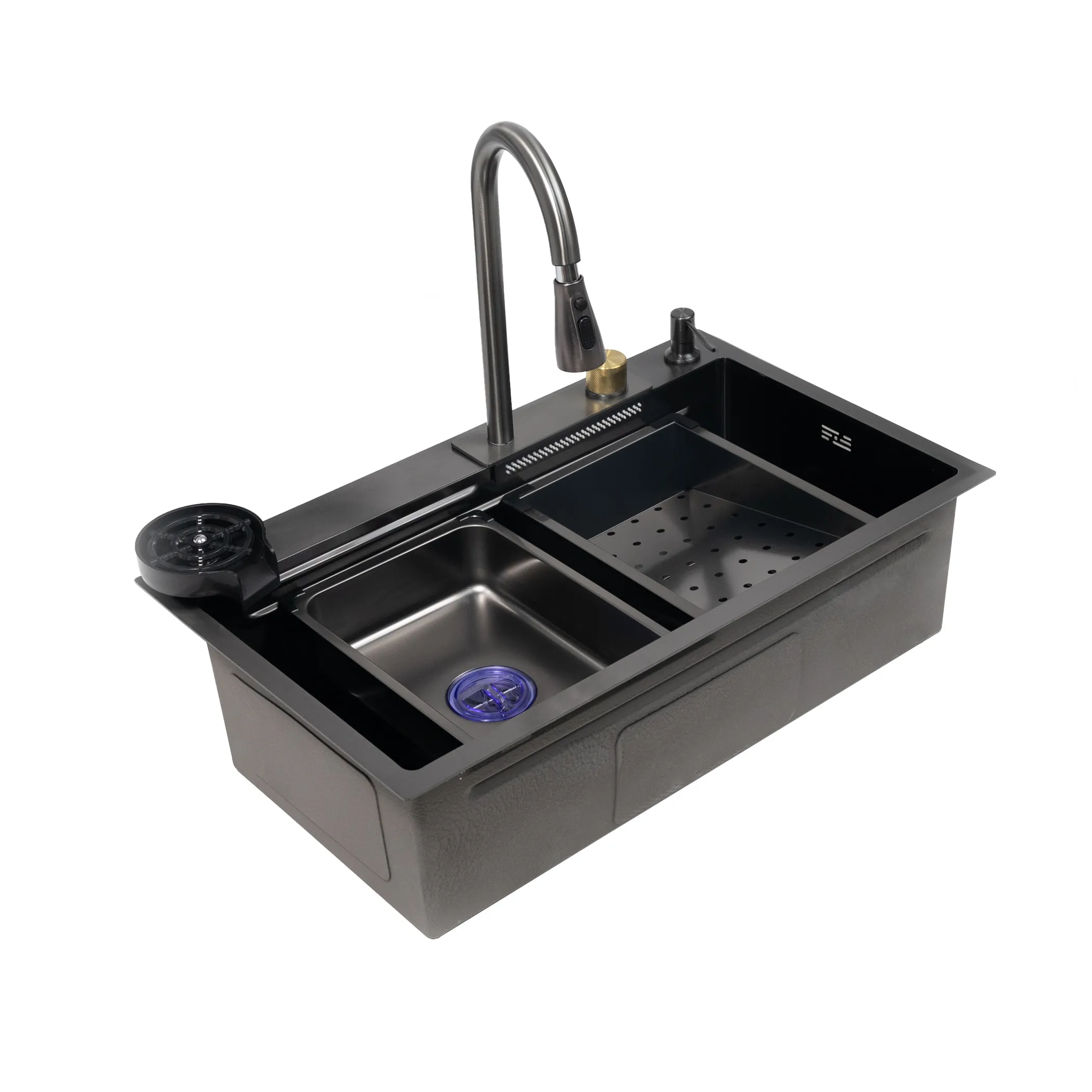 - в комплекте: мойка, смеситель с "водопадом", ринзер, коландер 2 шт, разделочная доска, сифон, крепления, дозатор для мыла;