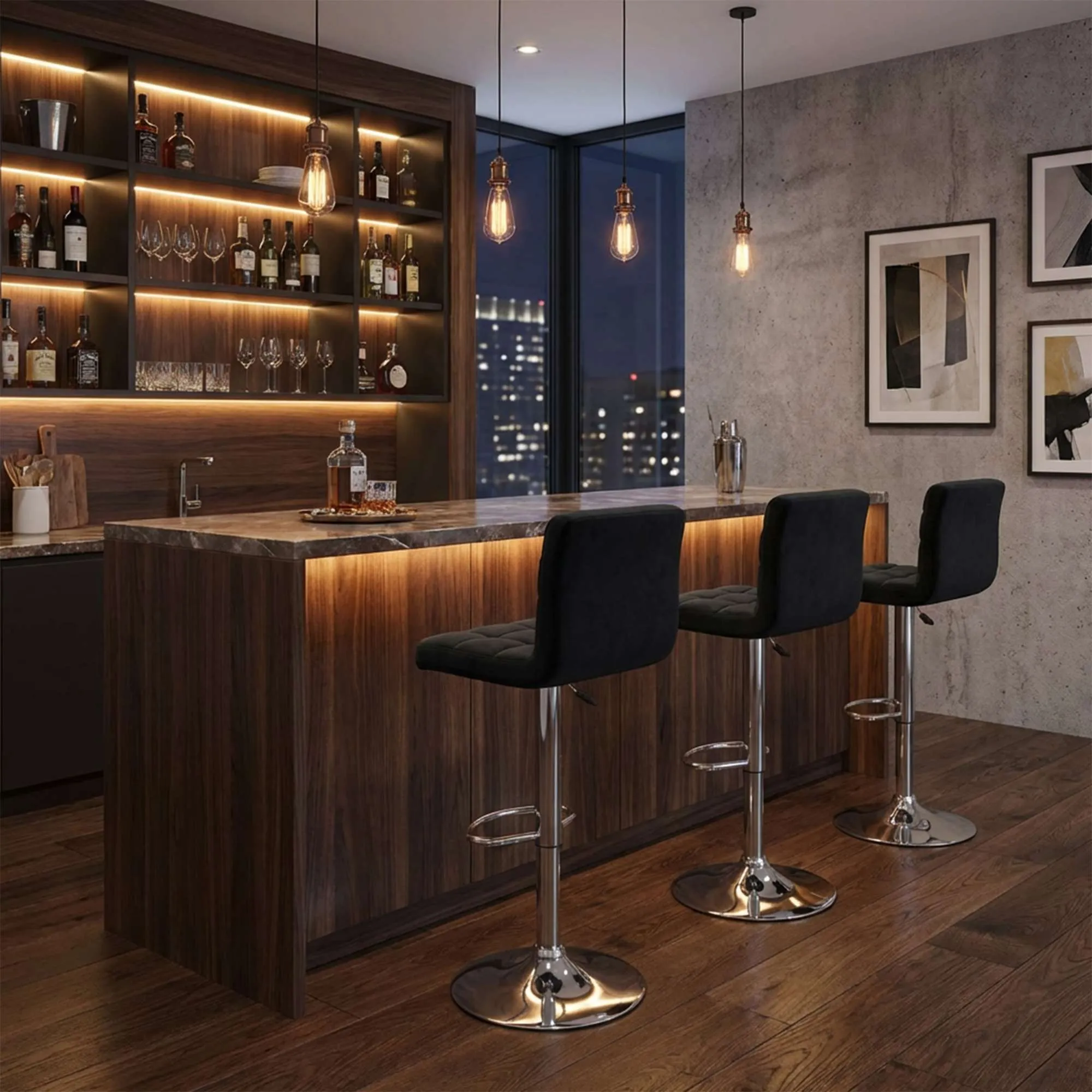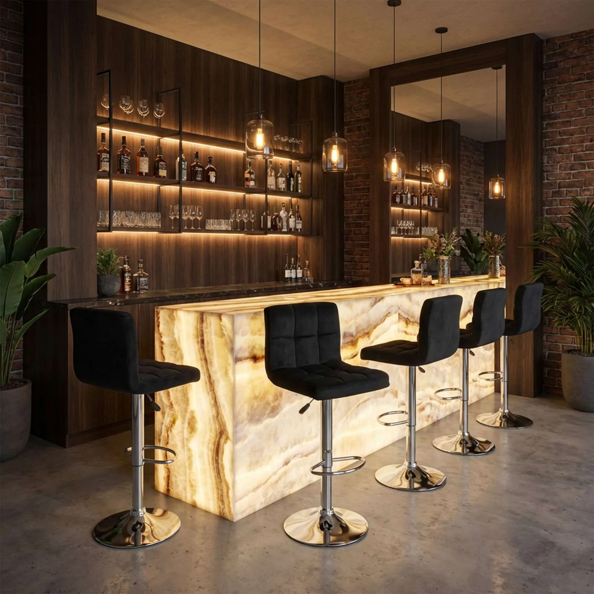 Барный стул LOGOS в черном цвете. Отличный вариант для кухни, гостиной, бара и салона красоты. Мягкая обивка стула изготовлена из велюра, имеет приятную текстуру ткани. В основании – металлическая опора в цвете хром с удобной подставкой для ног. Стул оснащен поворотным подъемным механизмом, благодаря которому можно отрегулировать сиденье по Вашему удобству. Максимальна нагрузка стула до 120 кг.