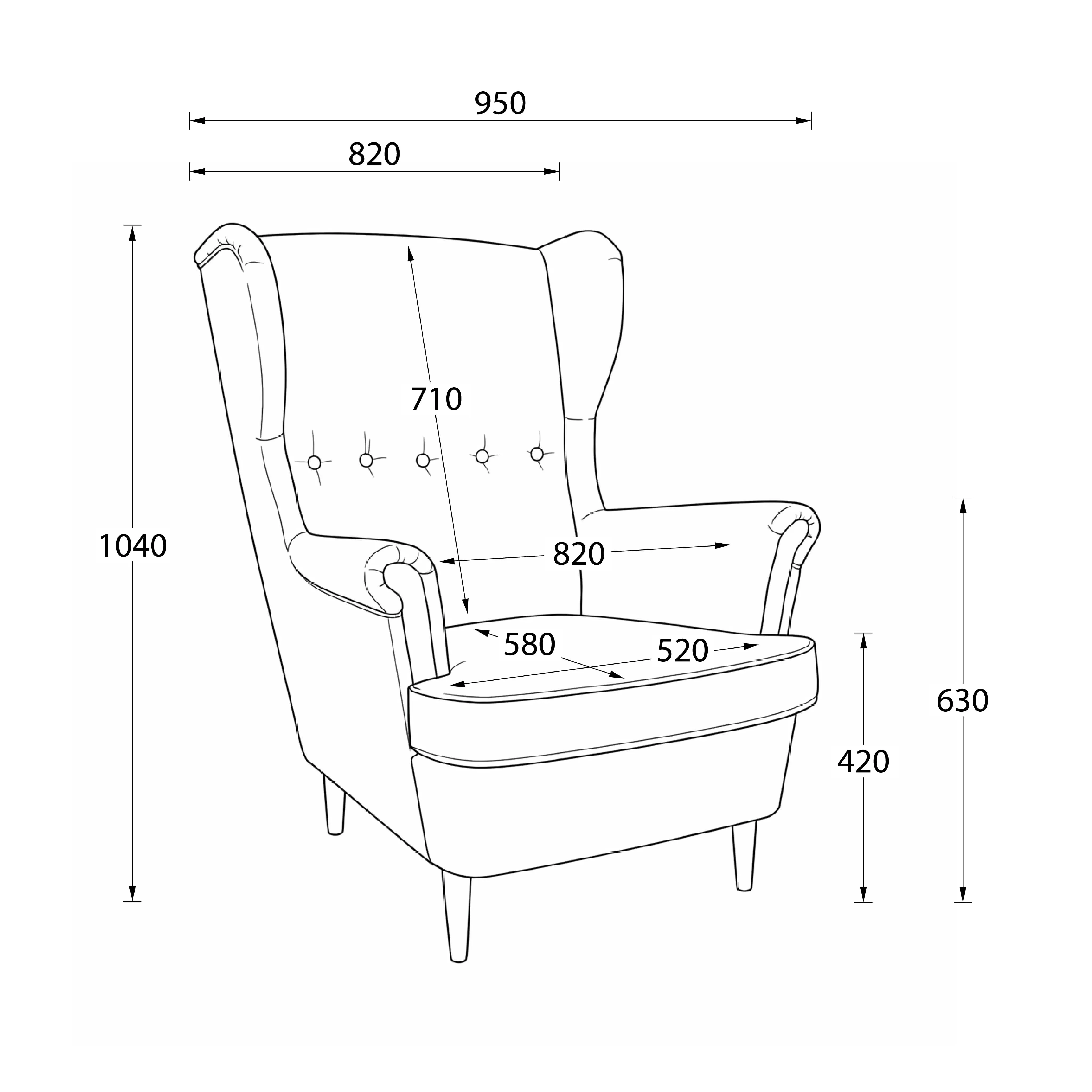 | Ширина с подлокотниками (мм) | 820 |